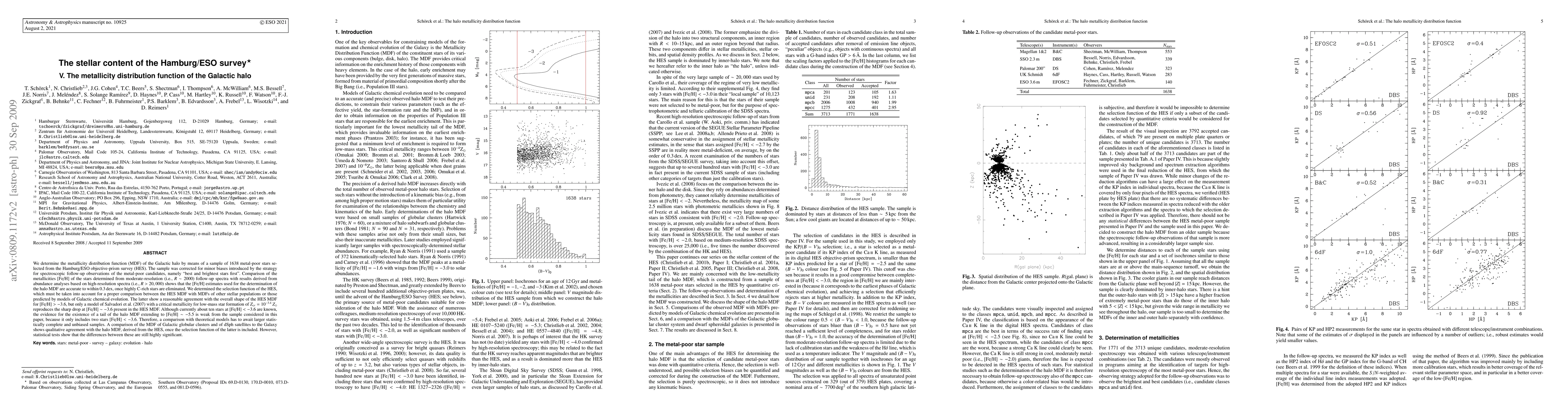 This paper investigates the metallicity distribution function (MDF) of the Galactic halo using 1638 metal-poor stars from the Hamburg/ESO survey. The study corrects for observational biases and finds that models of Galactic chemical evolution generally agree with the MDF shape but only a specific model by Salvadori et al. (2007) accurately reproduces the sharp drop at [Fe/H] ~-3.6.
