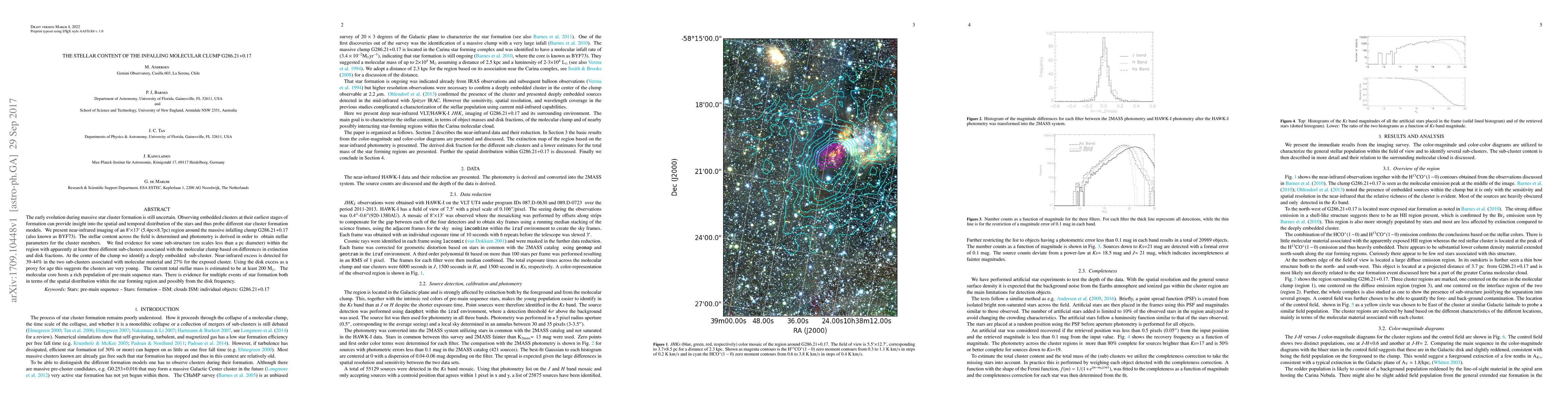 The study observes the molecular clump G286.21+0.17, identifying sub-clusters and pre-main sequence stars, suggesting multiple star formation events. The region hosts a young stellar population with a total mass of at least 200 solar masses.