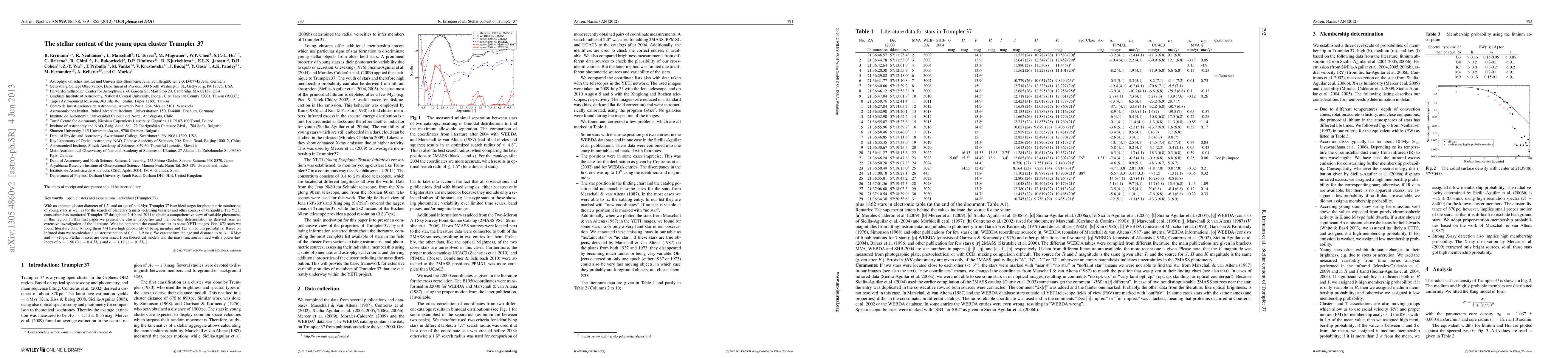 This paper investigates the stellar content of the young open cluster Trumpler 37, determining its properties and membership based on extensive literature and YETI consortium observations. The study confirms the cluster's age and distance, and derives a mass function with distinct power-law indices for different stellar mass ranges.