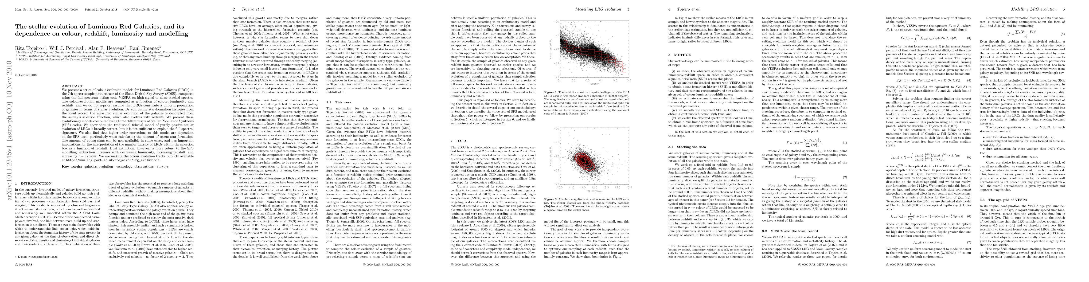 This paper presents colour evolution models for Luminous Red Galaxies (LRGs) from the SDSS, revealing that while passive stellar evolution is broadly correct, recent star formation and dust extinction significantly affect spectral signatures. The study finds that the amount of young stars and extinction varies with luminosity, redshift, and colour, and provides publicly available evolutionary models.