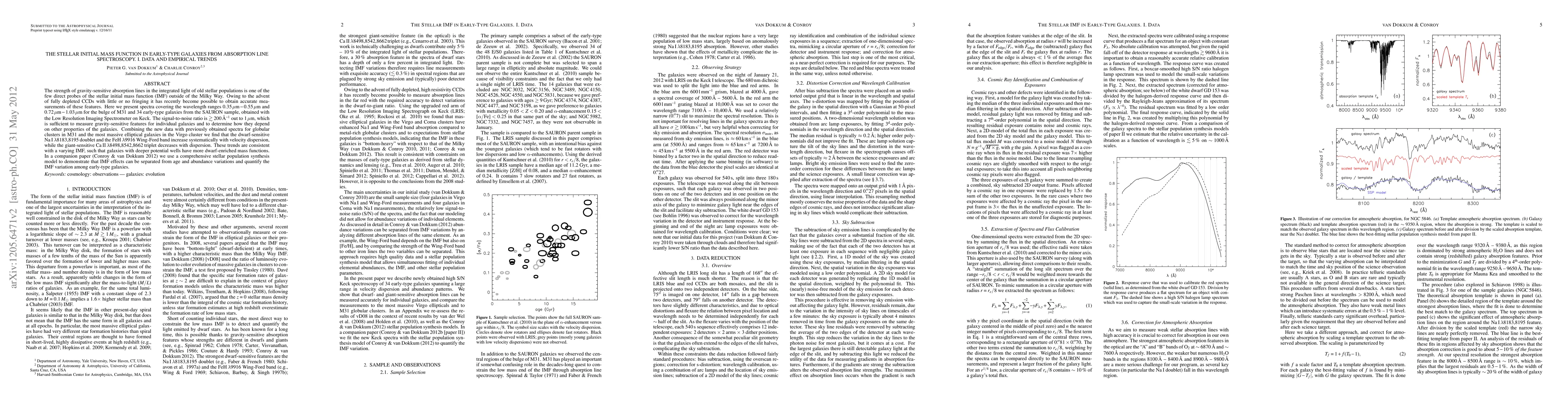 The strength of gravity-sensitive absorption lines in the integrated light of old stellar populations is one of the few direct probes of the stellar initial mass function (IMF) outside of the Milky Way. Owing to the advent of fully depleted CCDs with little or no fringing it has recently become possible to obtain accurate measurements of these features. Here we present spectra covering the wavelength ranges 0.35 - 0.55 micron and 0.72 - 1.03 micron for the bulge of M31 and 34 early-type galaxies from the SAURON sample, obtained with the Low Resolution Imaging Spectrometer on Keck. The signal-to-noise ratio is >200 per Angstrom out to 1 micron, which is sufficient to measure gravity-sensitive features for individual galaxies and to determine how they depend on other properties of the galaxies. Combining the new data with previously obtained spectra for globular clusters in M31 and the most massive elliptical galaxies in the Virgo cluster we find that the dwarf-sensitive Na I doublet and the FeH Wing-Ford band increase systematically with velocity dispersion, while the giant-sensitive Ca II triplet decreases with dispersion. These trends are consistent with a varying IMF, such that galaxies with deeper potential wells have more dwarf-enriched mass functions. In a companion paper (Conroy & van Dokkum 2012) we use a comprehensive stellar population synthesis model to demonstrate that IMF effects can be separated from age and abundance variations and quantify the IMF variation among early-type galaxies.