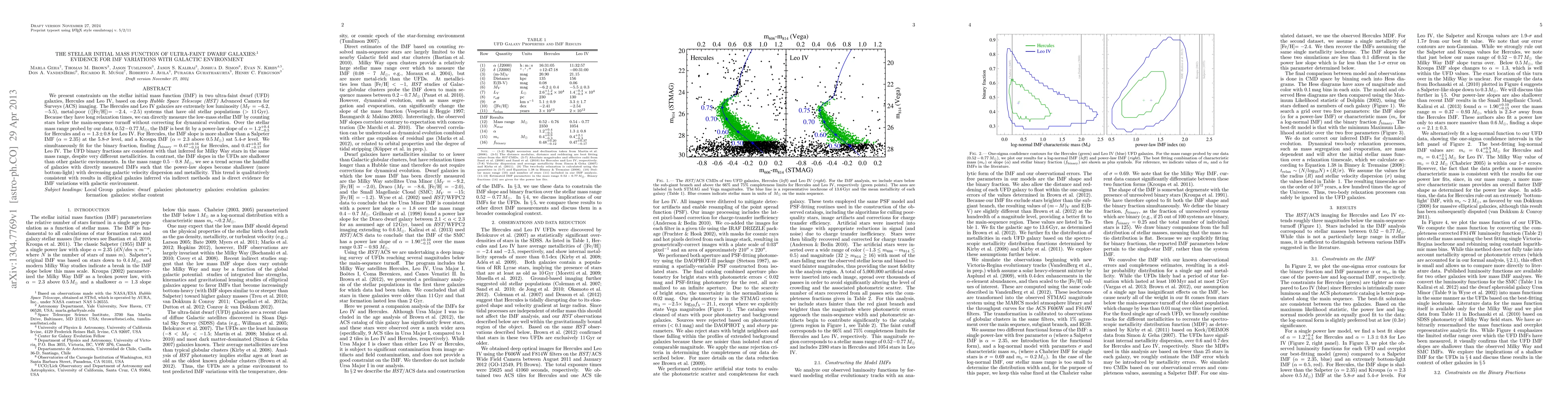 This paper investigates the stellar initial mass function (IMF) in two ultra-faint dwarf galaxies, Hercules and Leo IV, using HST/ACS imaging. The study finds that the IMF slopes in these galaxies are shallower than in more typical environments, suggesting a correlation between IMF variations and galactic environment.