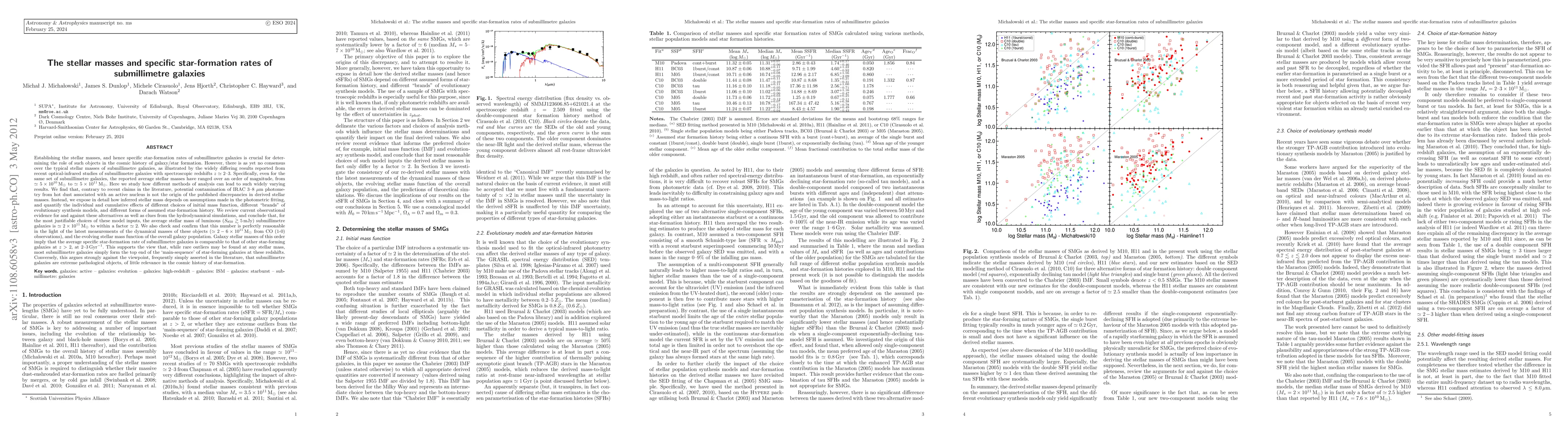 This paper investigates the stellar masses and specific star-formation rates of submillimetre galaxies (SMGs), revealing that discrepancies in reported stellar masses arise from differing assumptions in photometric fitting rather than contamination from hot dust. The study concludes that, with justifiable model choices, the average stellar mass of SMGs is around 2x10^11 Mo, supporting their role as high-end star-forming galaxies at z>2.