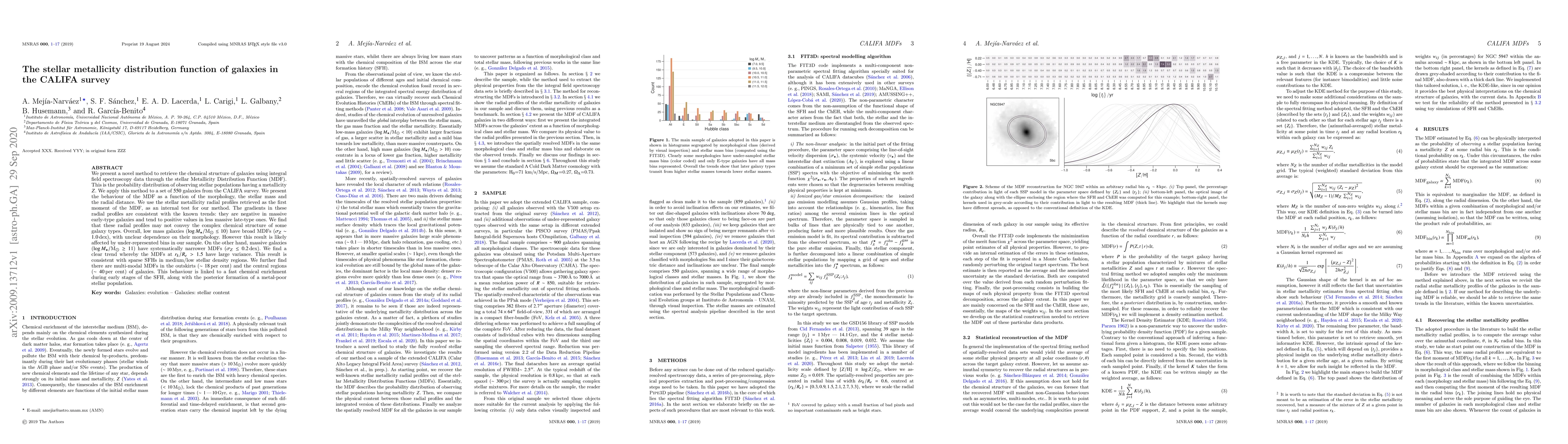 This paper introduces a new method to analyze the stellar Metallicity Distribution Function (MDF) from CALIFA survey data, revealing complex chemical structures in galaxies. It finds that low-mass galaxies exhibit broad MDFs, while massive galaxies show narrower MDFs, with significant variance in MDFs at large radii indicating sparse star formation histories.