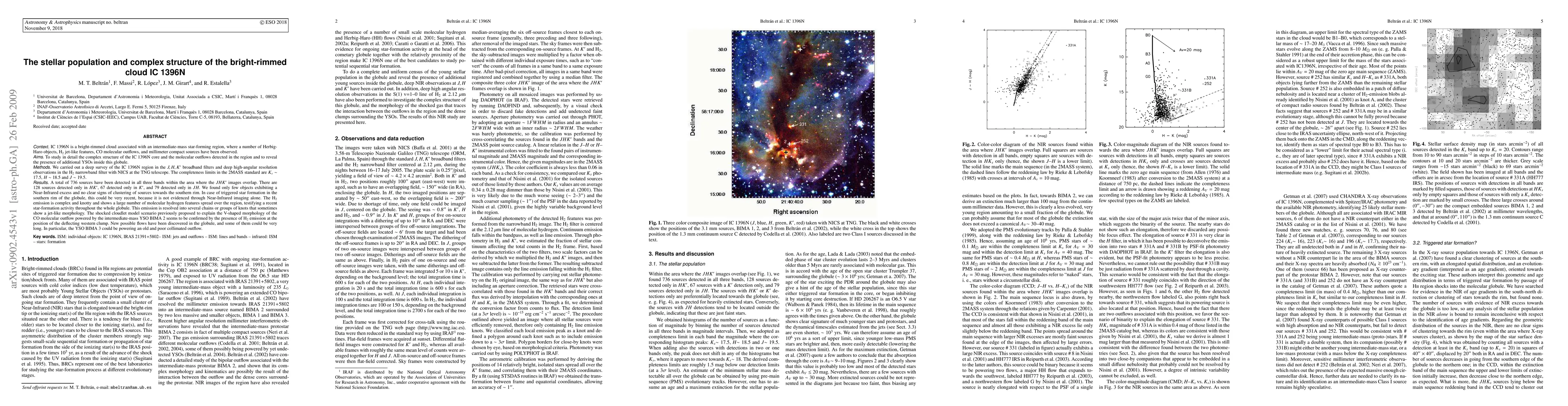 Context. IC 1396N is a bright-rimmed cloud associated with an intermediate-mass star-forming region, where a number of Herbig-Haro objects, H2 jet-like features, CO molecular outflows, and millimeter compact sources have been observed. Aims. To study in detail the complex structure of the IC 1396N core and the molecular outflows detected in the region and to reveal the presence of additional YSOs inside this globule. Methods. We carried out a deep survey of the IC 1396N region in the J, H, K' broadband filters and deep high-angular resolution observations in the H2 narrowband filter with NICS at the TNG telescope. The completeness limits in the 2MASS standard are Ks~17.5, H~18.5 and J~19.5. Results. A total of 736 sources have been detected in all three bands within the area where the JHK' images overlap. There are 128 sources detected only in HK', 67 detected only in K', and 79 detected only in H. We found only few objects exhibiting a Near-Infrared excess and no clear signs of clustering of sources towards the southern rim. In case of triggered star formation in the southern rim of the globule, this could be very recent, because it is not evidenced through Near-Infrared imaging alone. The H2 emission is complex and knotty and shows a large number of molecular hydrogen features spread over the region, testifying a recent star-formation activity throughout the whole globule. This emission is resolved into several chains or groups of knots that sometimes show a jet-like morphology. The shocked cloudlet model scenario previously proposed to explain the V-shaped morphology of the CO molecular outflow powered by the intermediate-mass YSO BIMA 2 seems to be confirmed by the presence of H2 emission at the position of the deflecting western clump. New possible flows have been discovered in the globule,