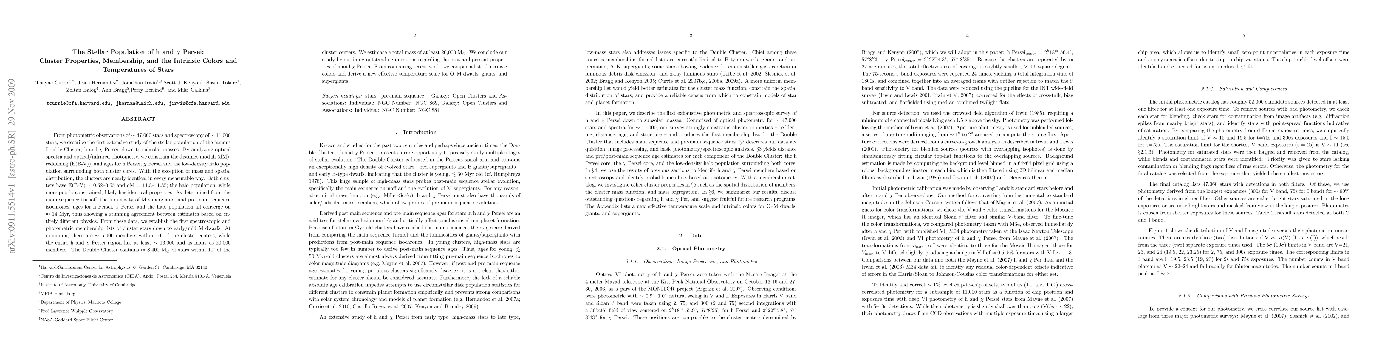 The paper presents the first extensive study of the Double Cluster's stellar population, including detailed membership lists and a new effective temperature scale for various stellar types.