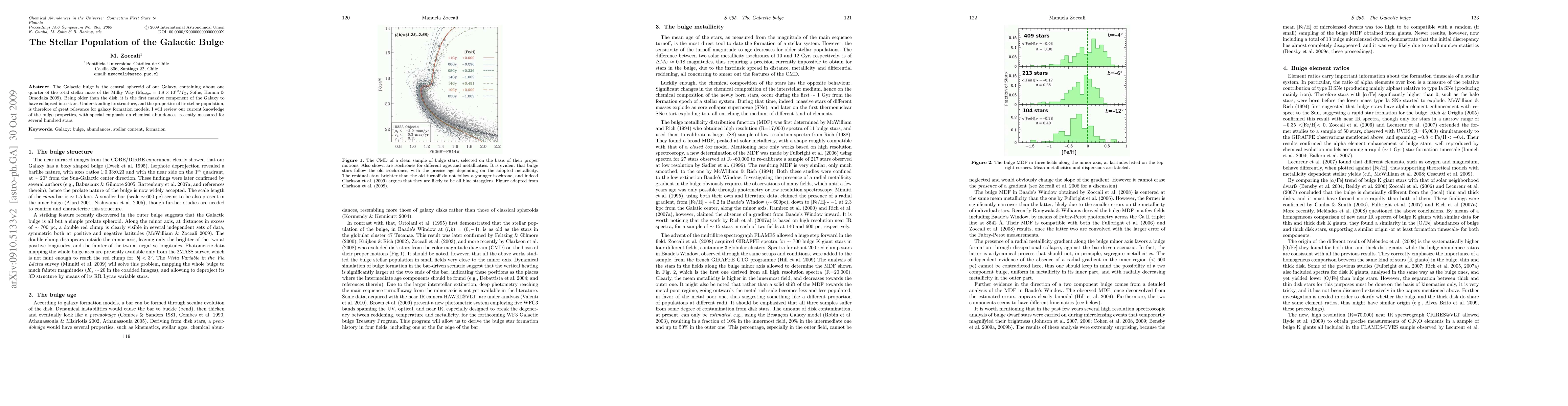This paper reviews the current understanding of the Galactic bulge's structure and stellar population, focusing on its older stellar component and the chemical abundances of several hundred stars, which are crucial for galaxy formation models.