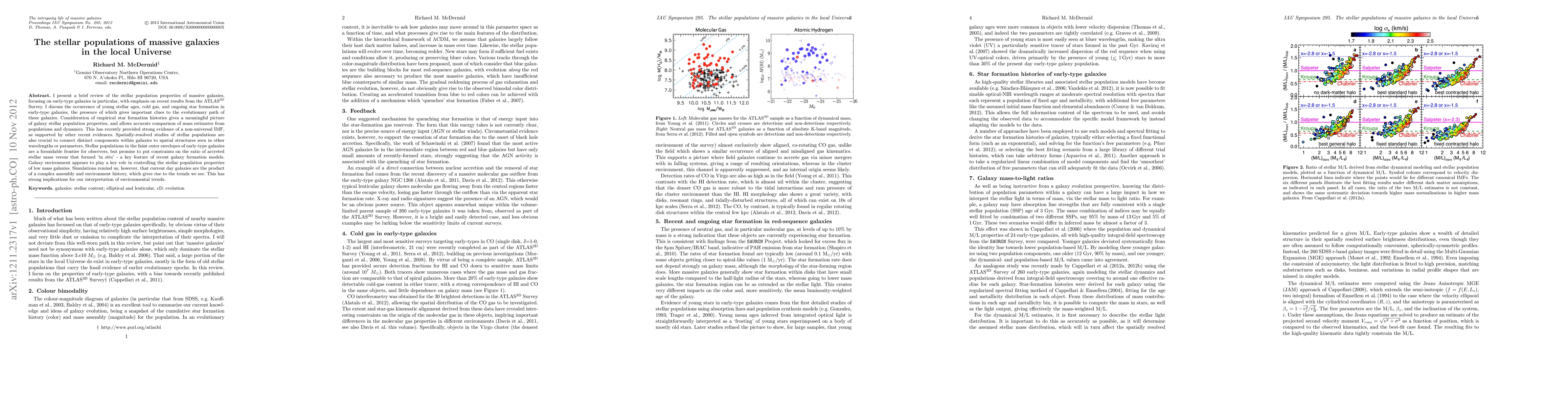 This paper reviews the stellar populations of massive, early-type galaxies, highlighting recent findings from the ATLAS3D Survey that reveal young stellar ages, cold gas, and ongoing star formation. It emphasizes the importance of these factors in understanding galaxy evolution and the implications of a non-universal initial mass function (IMF) and the role of galaxy environment in shaping stellar populations.