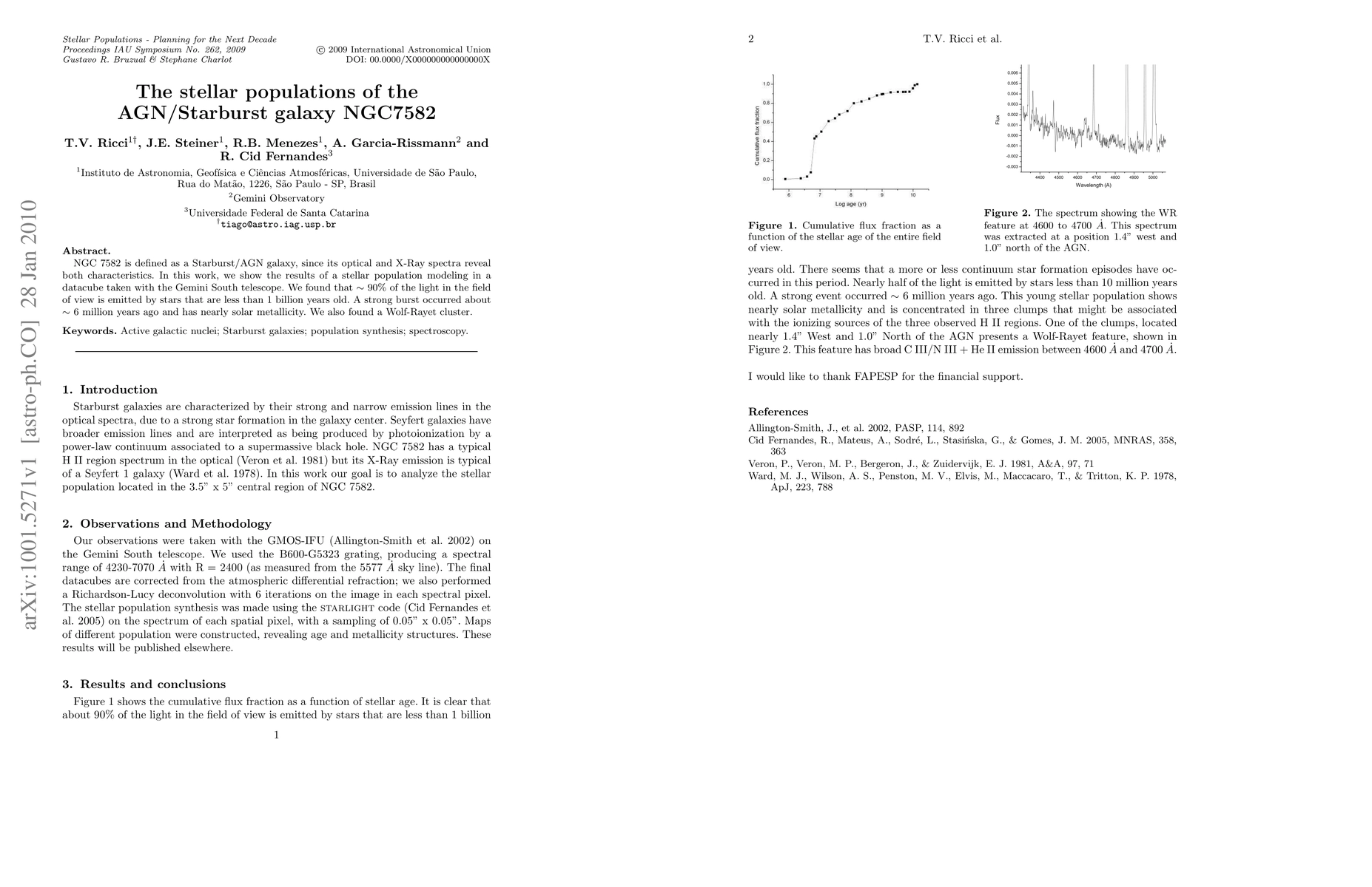 A study of the galaxy NGC7582 reveals that nearly 90% of its light comes from stars less than 1 billion years old, with a strong burst occurring around 6 million years ago.