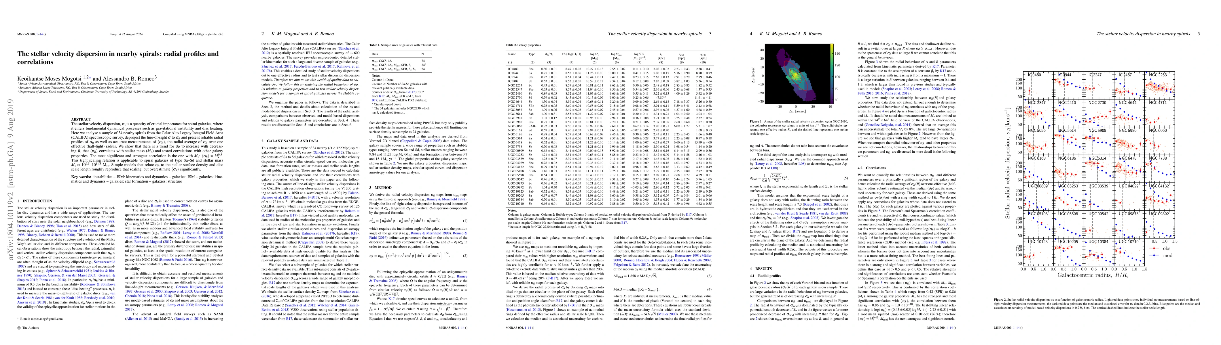 This study investigates the stellar velocity dispersion, $\sigma$, in 34 nearby spiral galaxies using the CALIFA survey, revealing that $\sigma$ increases with decreasing radius and correlates strongly with stellar mass, following the relation $\langle\sigma_{R}\rangle \propto M_{\star}^{0.5}$. Simple models linking $\sigma$ to stellar surface density and disc scale length partially reproduce this scaling but overestimate $\sigma$.
