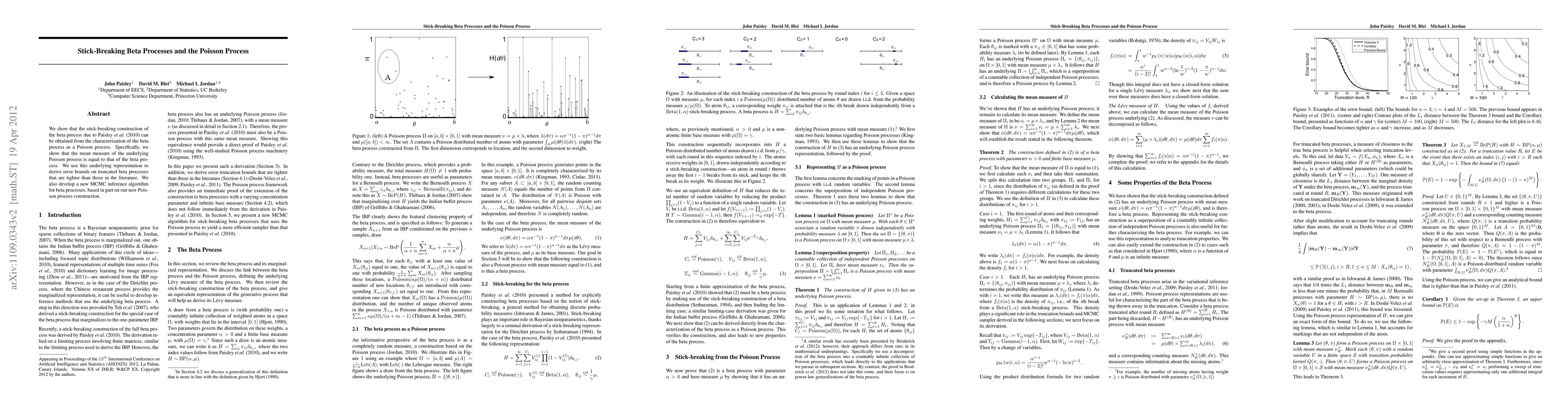 Researchers show that a beta process can be represented as a Poisson process, leading to tighter error bounds for truncated processes and a new MCMC inference algorithm.