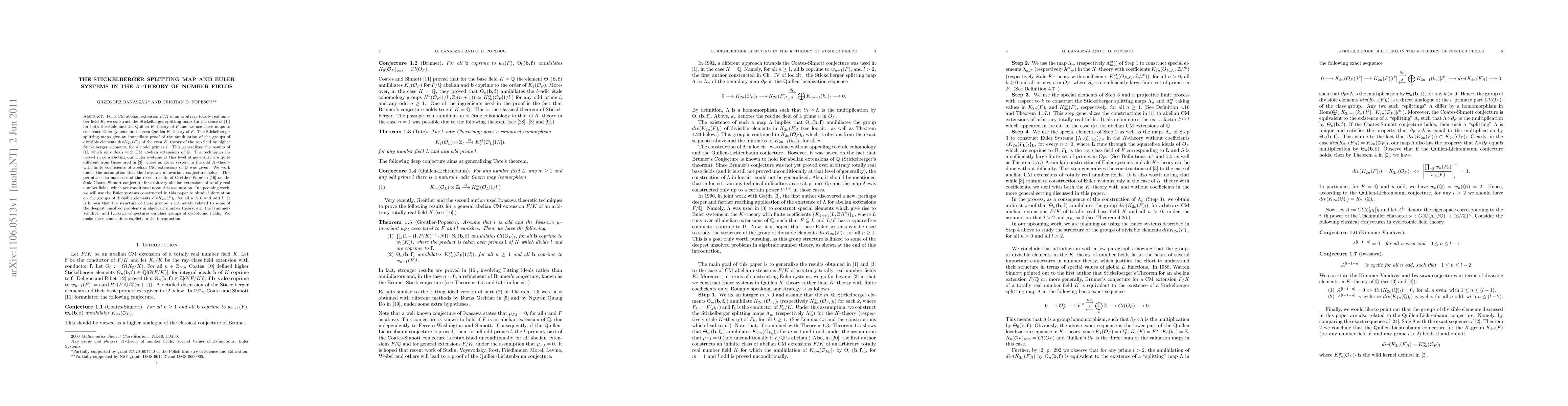 For a CM abelian extension $F/K$ of an arbitrary totally real number field $K$, we construct the Stickelberger splitting maps (in the sense of \cite{Ba1}) for both the \'etale and the Quillen $K$--theory of $F$ and we use these maps to construct Euler systems in the even Quillen $K$--theory of $F$. The Stickelberger splitting maps give an immediate proof of the annihilation of the groups of divisible elements $div K_{2n}(F)_l$ of the even $K$--theory of the top field by higher Stickelberger elements, for all odd primes $l$. This generalizes the results of \cite{Ba1}, which only deals with CM abelian extensions of $\Bbb Q$. The techniques involved in constructing our Euler systems at this level of generality are quite different from those used in \cite{BG1}, where an Euler system in the odd $K$--theory with finite coefficients of abelian CM extensions of $\Bbb Q$ was given. We work under the assumption that the Iwasawa $\mu$--invariant conjecture holds. This permits us to make use of the recent results of Greither-Popescu \cite{GP} on the \'etale Coates-Sinnott conjecture for arbitrary abelian extensions of totally real number fields, which are conditional upon this assumption. In upcoming work, we will use the Euler systems constructed in this paper to obtain information on the groups of divisible elements $div K_{2n}(F)_l$, for all $n>0$ and odd $l$. It is known that the structure of these groups is intimately related to some of the deepest unsolved problems in algebraic number theory, e.g. the Kummer-Vandiver and Iwasawa conjectures on class groups of cyclotomic fields. We make these connections explicit in the introduction.