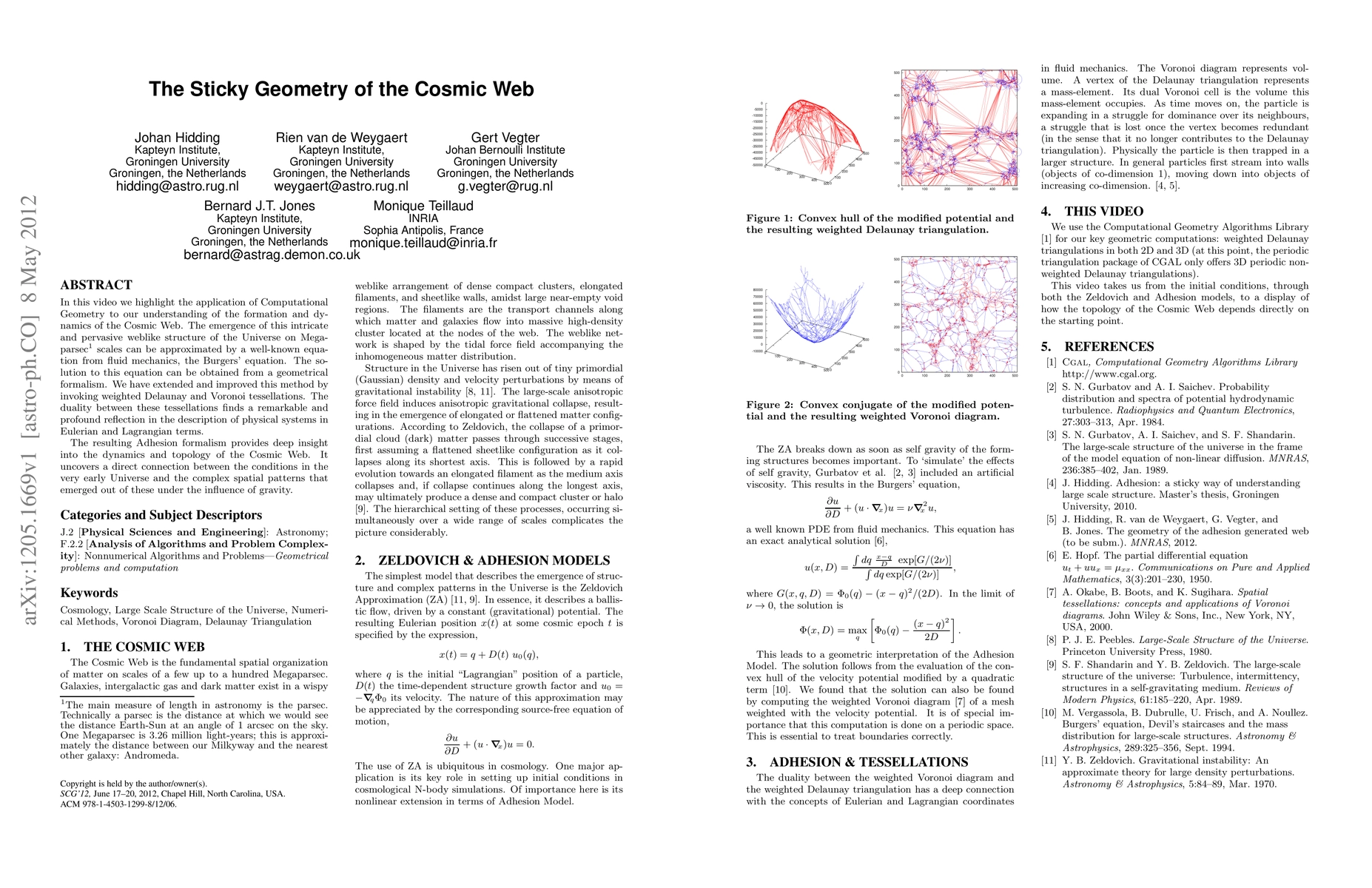 In this video we highlight the application of Computational Geometry to our understanding of the formation and dynamics of the Cosmic Web. The emergence of this intricate and pervasive weblike structure of the Universe on Megaparsec scales can be approximated by a well-known equation from fluid mechanics, the Burgers' equation. The solution to this equation can be obtained from a geometrical formalism. We have extended and improved this method by invoking weighted Delaunay and Voronoi tessellations. The duality between these tessellations finds a remarkable and profound reflection in the description of physical systems in Eulerian and Lagrangian terms. The resulting Adhesion formalism provides deep insight into the dynamics and topology of the Cosmic Web. It uncovers a direct connection between the conditions in the very early Universe and the complex spatial patterns that emerged out of these under the influence of gravity.