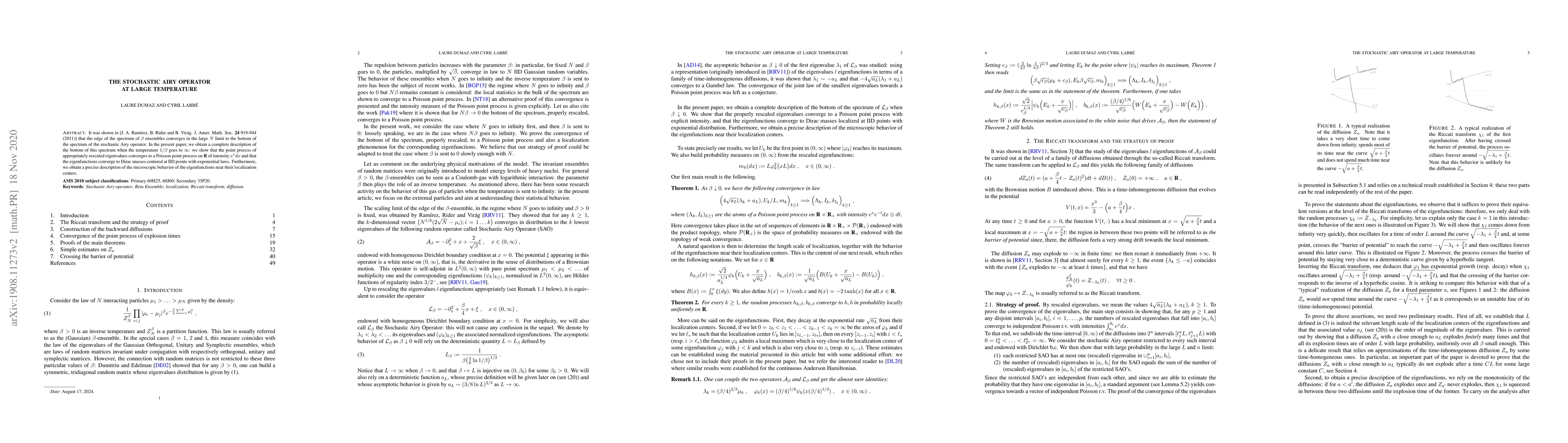 Researchers found that at high temperature, eigenvalues of a statistical model converge to a Poisson point process with specific intensity, and eigenfunctions to Dirac masses centered at independent points.