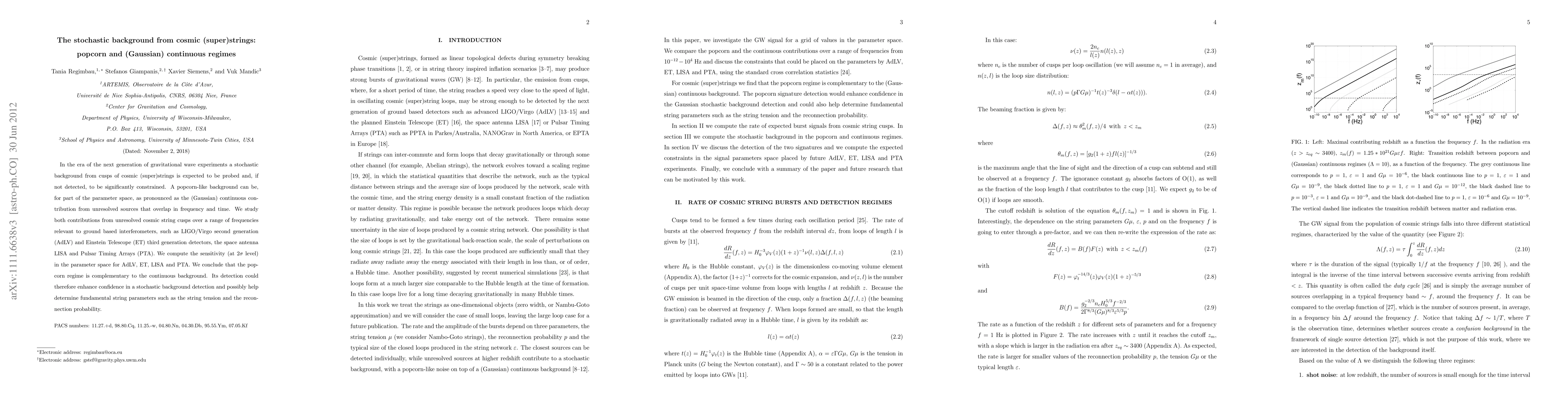 In the era of the next generation of gravitational wave experiments a stochastic background from cusps of cosmic (super)strings is expected to be probed and, if not detected, to be significantly constrained. A popcorn-like background can be, for part of the parameter space, as pronounced as the (Gaussian) continuous contribution from unresolved sources that overlap in frequency and time. We study both contributions from unresolved cosmic string cusps over a range of frequencies relevant to ground based interferometers, such as LIGO/Virgo second generation (AdLV) and Einstein Telescope (ET) third generation detectors, the space antenna LISA and Pulsar Timing Arrays (PTA). We compute the sensitivity (at $2 \sigma$ level) in the parameter space for AdLV, ET, LISA and PTA. We conclude that the popcorn regime is complementary to the continuous background. Its detection could therefore enhance confidence in a stochastic background detection and possibly help determine fundamental string parameters such as the string tension and the reconnection probability.