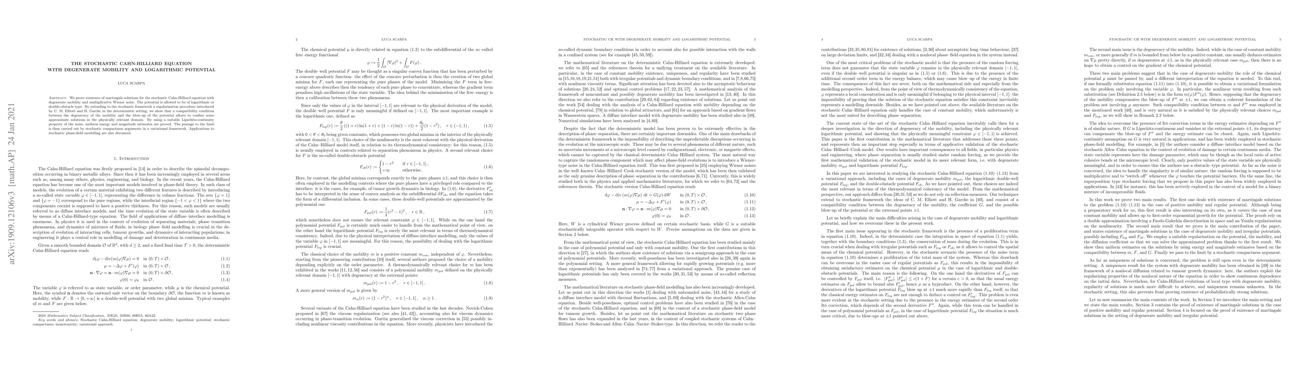 The paper proves existence of martingale solutions for a stochastic Cahn-Hilliard equation with degenerate mobility and logarithmic potential, allowing for applications in phase-field modeling.