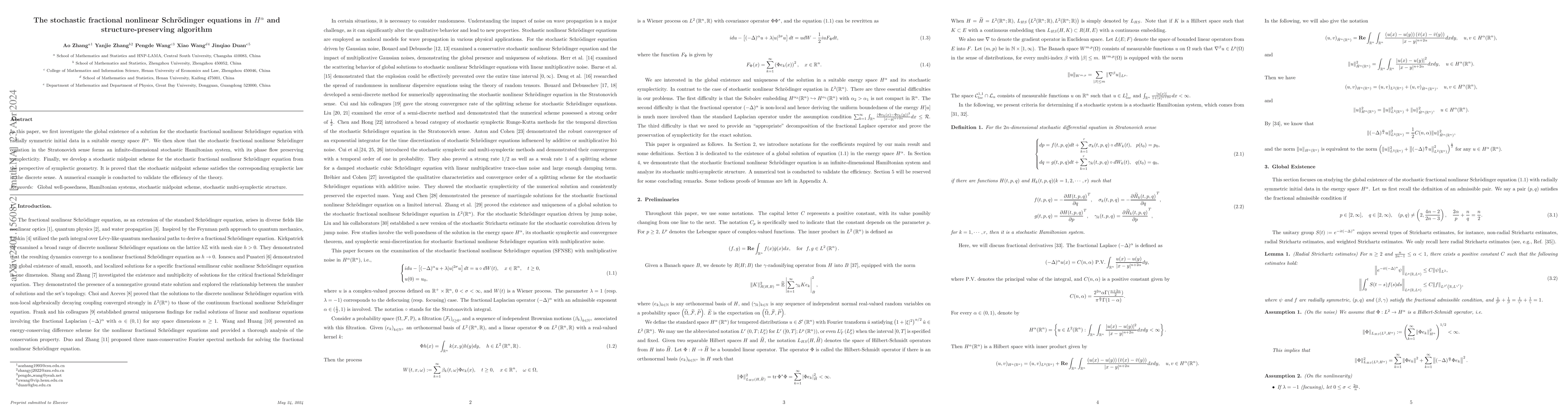This paper investigates the global existence of solutions for stochastic fractional nonlinear Schrödinger equations in $H^{\alpha}$ and demonstrates the system's symplectic structure. A stochastic midpoint scheme is developed that preserves symplecticity, validated through a numerical example.