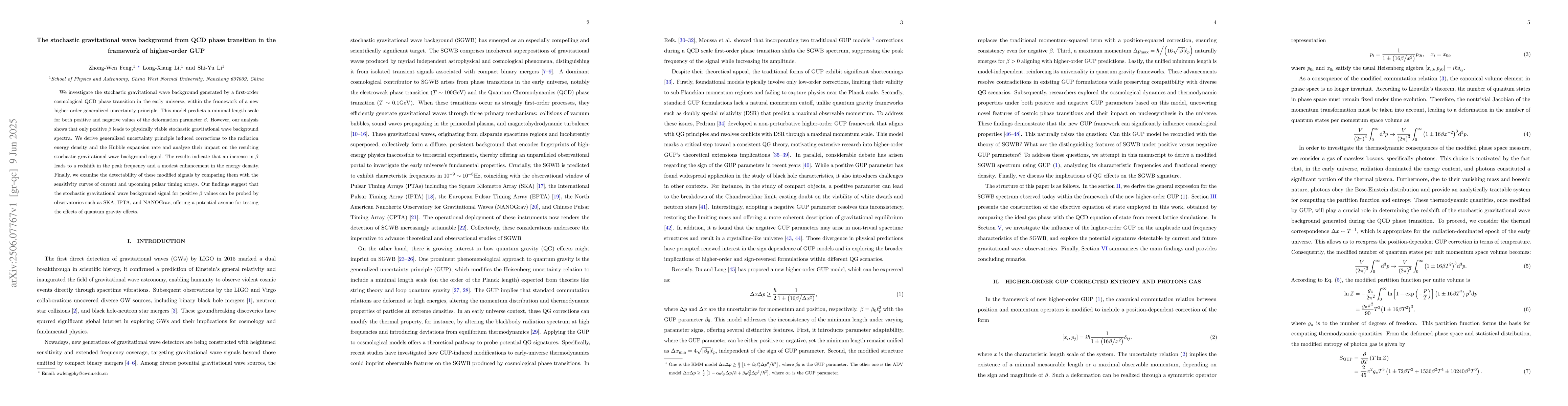 This research paper explores the stochastic gravitational wave background generated by a QCD phase transition in the early universe, using a higher-order generalized uncertainty principle framework. It finds that only positive deformation parameters lead to physically viable signals that can be detected by observatories like SKA and NANOGrav.