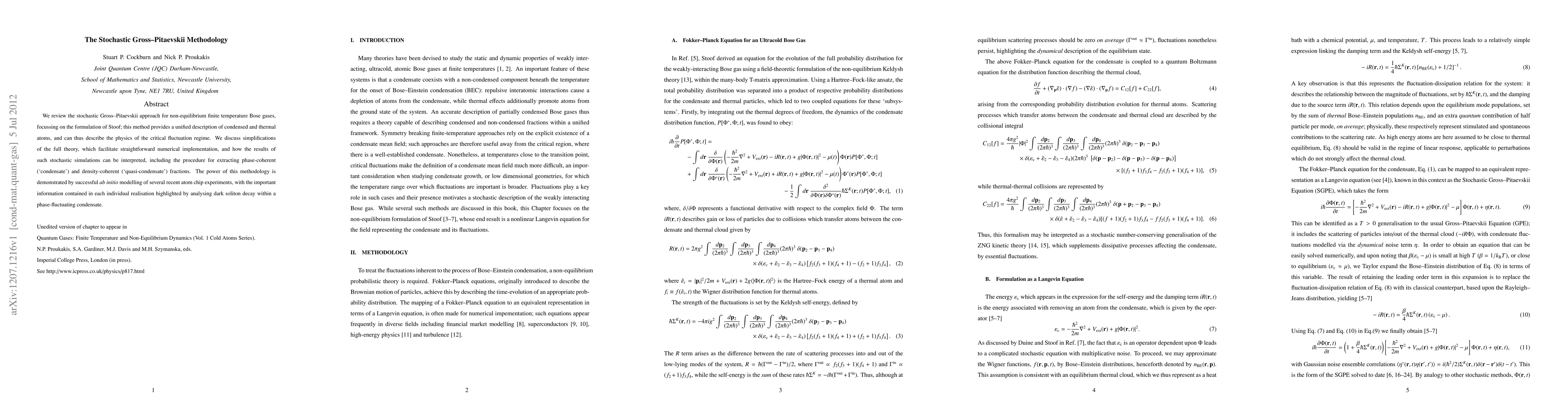 The paper reviews the stochastic Gross-Pitaevskii method for studying non-equilibrium, finite temperature Bose gases, focusing on Stoof's formulation. It highlights the method's ability to describe both condensed and thermal atoms, simplifying numerical implementation and interpreting results to extract coherent fractions. The method's success is demonstrated through modeling recent atom chip experiments, particularly in understanding dark soliton decay within a phase-fluctuating condensate.