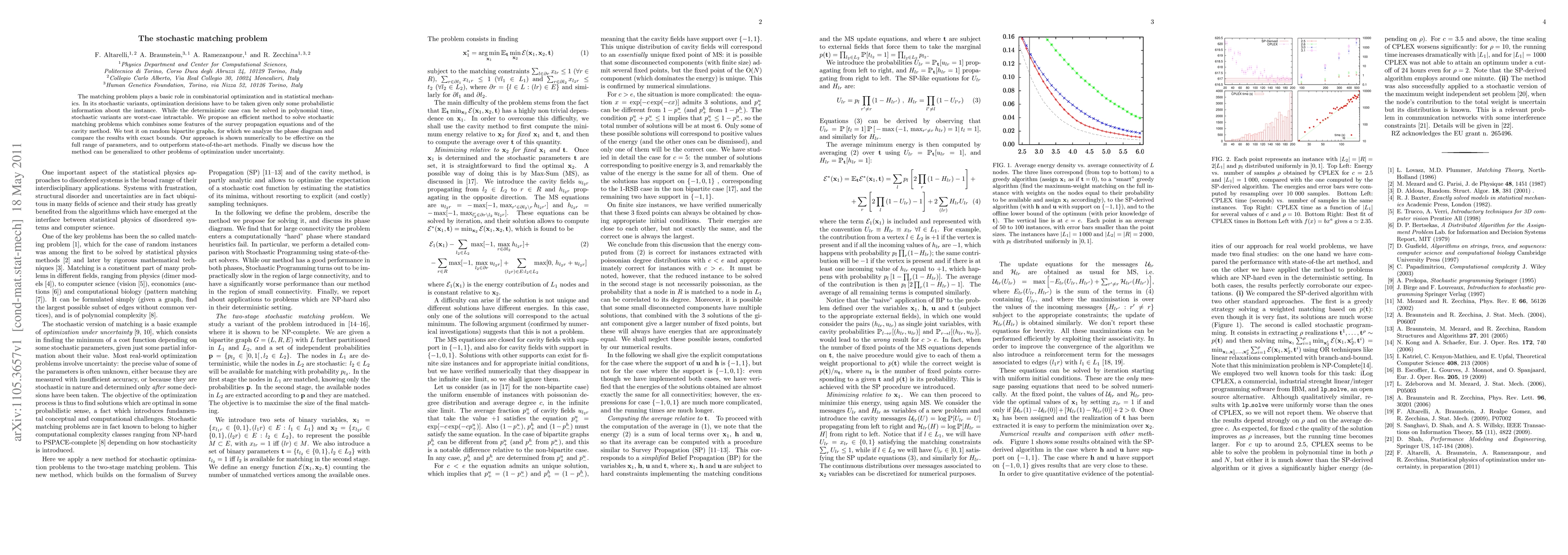 Researchers propose an efficient method to solve stochastic matching problems using a combination of survey propagation equations and cavity methods, outperforming state-of-the-art methods on random bipartite graphs.