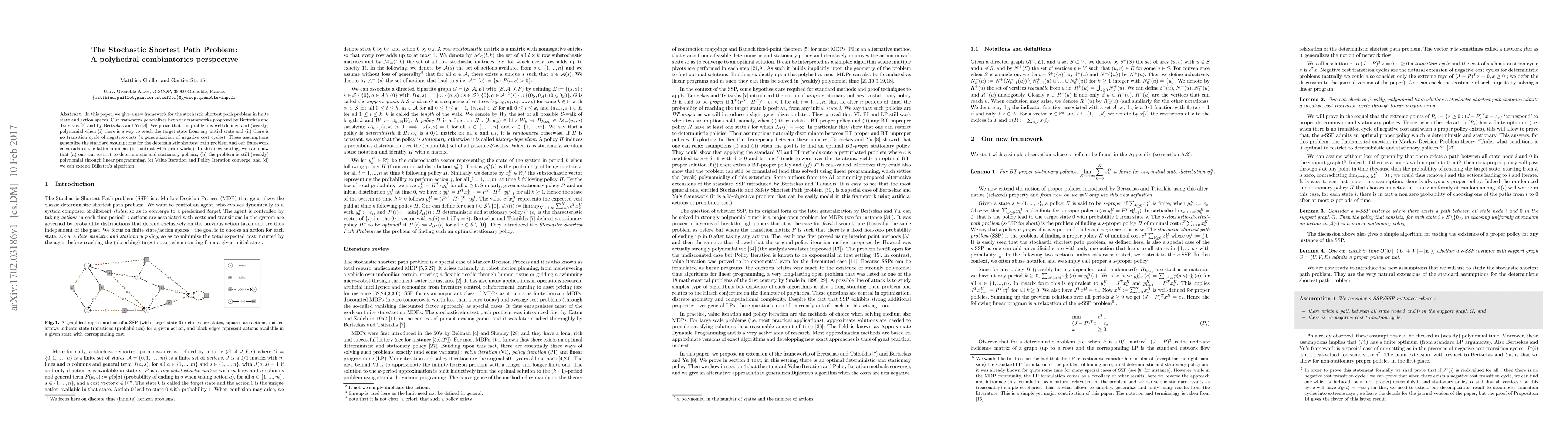 This paper presents a new framework for the stochastic shortest path problem, generalizing previous approaches by Bertsekas and others. Under specific conditions, the problem is shown to be well-defined and polynomially solvable via linear programming, with convergence guarantees for Value Iteration and Policy Iteration.