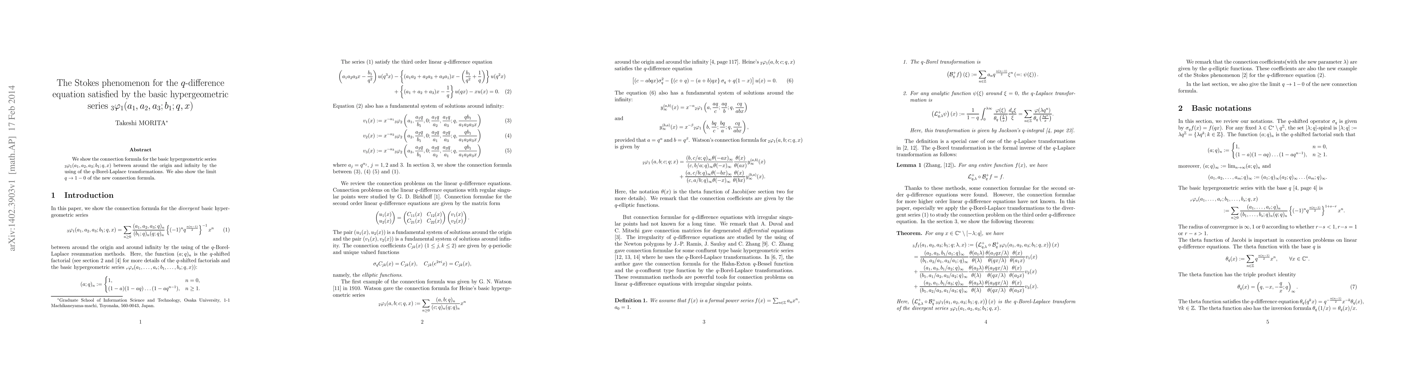 Summary: This paper establishes the connection formula for the basic hypergeometric series ${}_3\varphi_1$ using $q$-Borel-Laplace transformations, and investigates the limit behavior as $q$ approaches $1-0$.