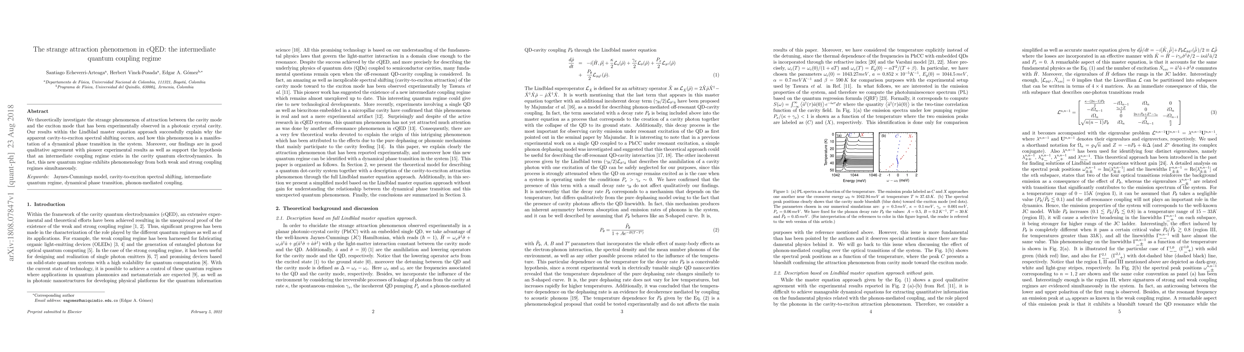 We theoretically investigate the strange phenomenon of attraction between the cavity mode and the exciton mode that has been experimentally observed in a photonic crystal cavity. Our results within the Lindblad master equation approach successfully explain why the apparent cavity-to-exciton spectral shifting occurs, and how this phenomenon is a manifestation of a dynamical phase transition in the system. Moreover, our findings are in good qualitative agreement with pioneer experimental results as well as support the hypothesis that an intermediate coupling regime exists in the cavity quantum electrodynamics. In fact, this new quantum regime exhibits phenomenology from both weak and strong coupling regimes simultaneously.