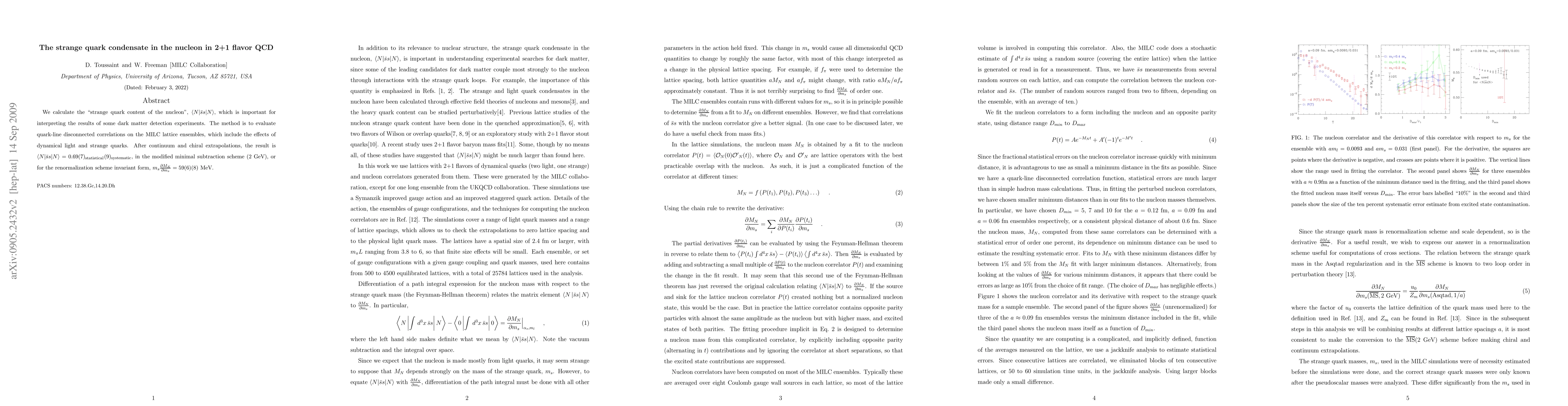 Researchers calculated the strange quark content of the nucleon using lattice ensembles and found it to be 0.69 with an error margin, which is important for interpreting dark matter detection results.