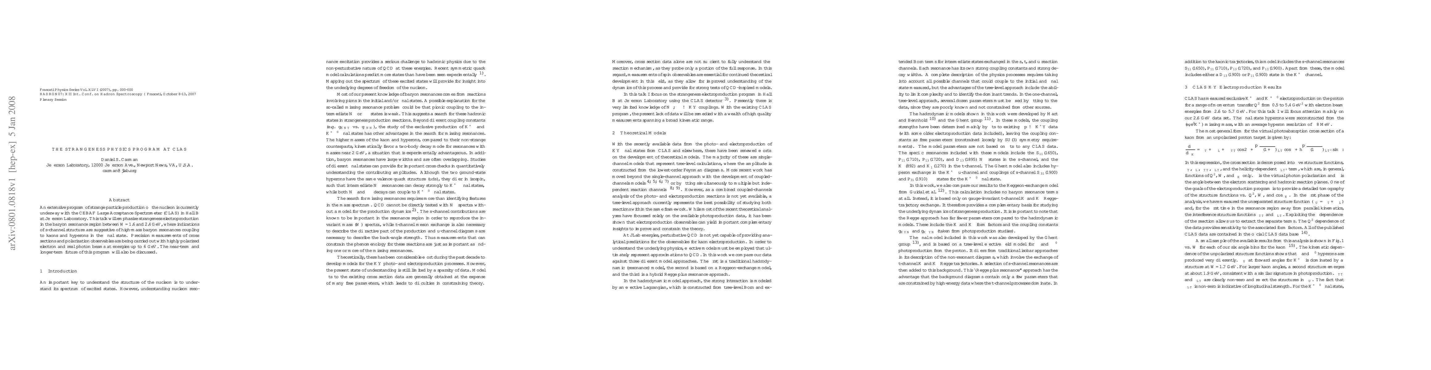 This paper outlines a program at CLAS in Jefferson Laboratory focusing on strange particle production, particularly studying high-mass baryon resonances through precision measurements of cross sections and polarization observables in the baryon resonance region. Future plans and developments of the program are also discussed.