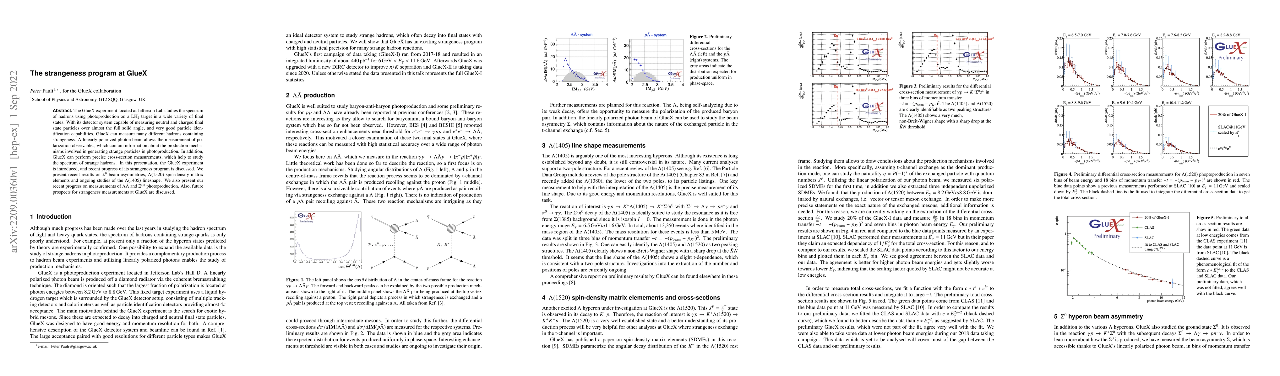 The GlueX experiment at Jefferson Lab investigates the spectrum of hadrons, particularly those with strangeness, using photoproduction on a LH$_2$ target. Recent results include measurements of $\Sigma^0$ beam asymmetries, $\Lambda$(1520) spin-density matrix elements, and ongoing studies of the $\Lambda$(1405) lineshape, alongside progress in $\Lambda\bar\Lambda$ and $\Xi^{(*)}$ photoproduction. Future prospects for further strangeness measurements are also outlined.