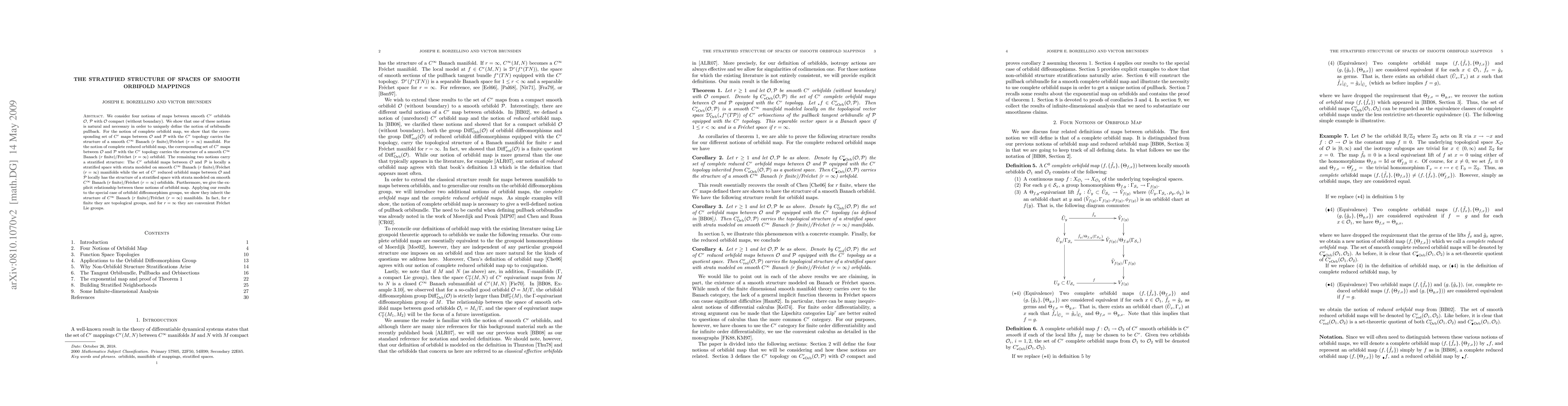 We consider four notions of maps between smooth C^r orbifolds O, P with O compact (without boundary). We show that one of these notions is natural and necessary in order to uniquely define the notion of orbibundle pullback. For the notion of complete orbifold map, we show that the corresponding set of C^r maps between O and P with the C^r topology carries the structure of a smooth C^\infty Banach (r finite)/Frechet (r=infty) manifold. For the notion of complete reduced orbifold map, the corresponding set of C^r maps between O and P with the C^r topology carries the structure of a smooth C^\infty Banach (r finite)/Frechet (r=infty) orbifold. The remaining two notions carry a stratified structure: The C^r orbifold maps between O and P is locally a stratified space with strata modeled on smooth C^\infty Banach (r finite)/Frechet (r=infty) manifolds while the set of C^r reduced orbifold maps between O and P locally has the structure of a stratified space with strata modeled on smooth C^\infty Banach (r finite)/Frechet (r=infty) orbifolds. Furthermore, we give the explicit relationship between these notions of orbifold map. Applying our results to the special case of orbifold diffeomorphism groups, we show they inherit the structure of C^\infty Banach (r finite)/Frechet (r=infty) manifolds. In fact, for r finite they are topological groups, and for r=infty they are convenient Frechet Lie groups.