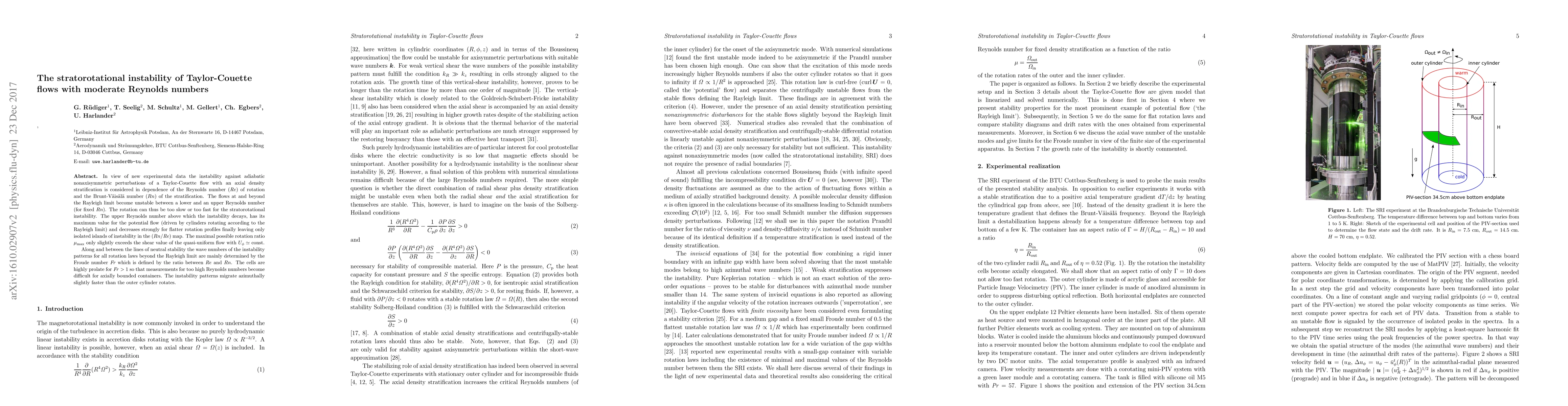 In view of new experimental data the instability against adiabatic nonaxisymmetric perturbations of a Taylor-Couette flow with an axial density stratification is considered in dependence of the Reynolds number Re of rotation and the Brunt-V\"ais\"al\"a number Rn of the stratification. The flows at and beyond the Rayleigh limit become unstable between a lower and an upper Reynolds number (for fixed Rn). The rotation can thus be too slow or too fast for the stratorotational instability. The upper Reynolds number above which the instability decays, has its maximum value for the potential flow (driven by cylinders rotating according to the Rayleigh limit) and decreases strongly for flatter rotation profiles finally leaving only isolated islands of instability in the (Rn/Re) map. The maximal possible rotation ratio $\mu_{\rm max}$ only slightly exceeds the shear value of the quasi-uniform flow with $U_\phi\simeq$const. Along and between the lines of neutral stability the wave numbers of the instability patterns for all rotation laws beyond the Rayleigh limit are mainly determined by the Froude number Fr which is defined by the ratio between Re and Rn. The cells are highly prolate for Fr>1 so that measurements for too high Reynolds numbers become difficult for axially bounded containers. The instability patterns migrate azimuthally slightly faster than the outer cylinder rotates.
