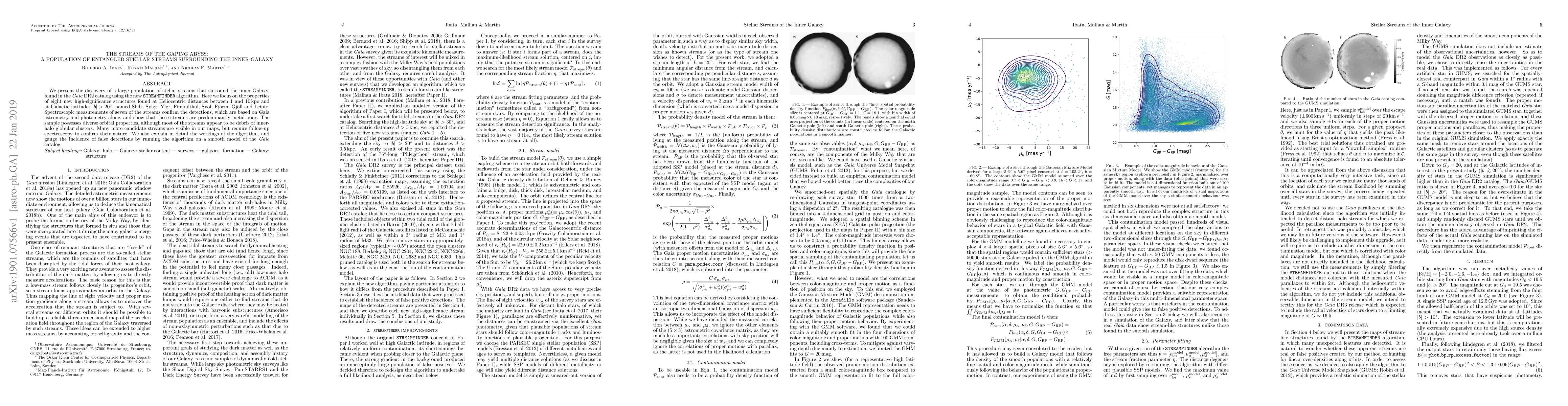 We present the discovery of a large population of stellar streams that surround the inner Galaxy, found in the Gaia DR2 catalog using the new STREAMFINDER algorithm. Here we focus on the properties of eight new high-significance structures found at Heliocentric distances between 1 and 10 kpc and at Galactic latitudes $|b|>20\deg$, named Slidr, Sylgr, Ylgr, Fimbulthul, Sv\"ol, Fj\"orm, Gj\"oll and Leiptr. Spectroscopic measurements of seven of the streams confirm the detections, which are based on Gaia astrometry and photometry alone, and show that these streams are predominantly metal-poor. The sample possesses diverse orbital properties, although most of the streams appear to be debris of inner-halo globular clusters. Many more candidate streams are visible in our maps, but require follow-up spectroscopy to confirm their nature. We also explain in detail the workings of the algorithm, and gauge the incidence of false detections by running the algorithm on a smooth model of the Gaia catalog.