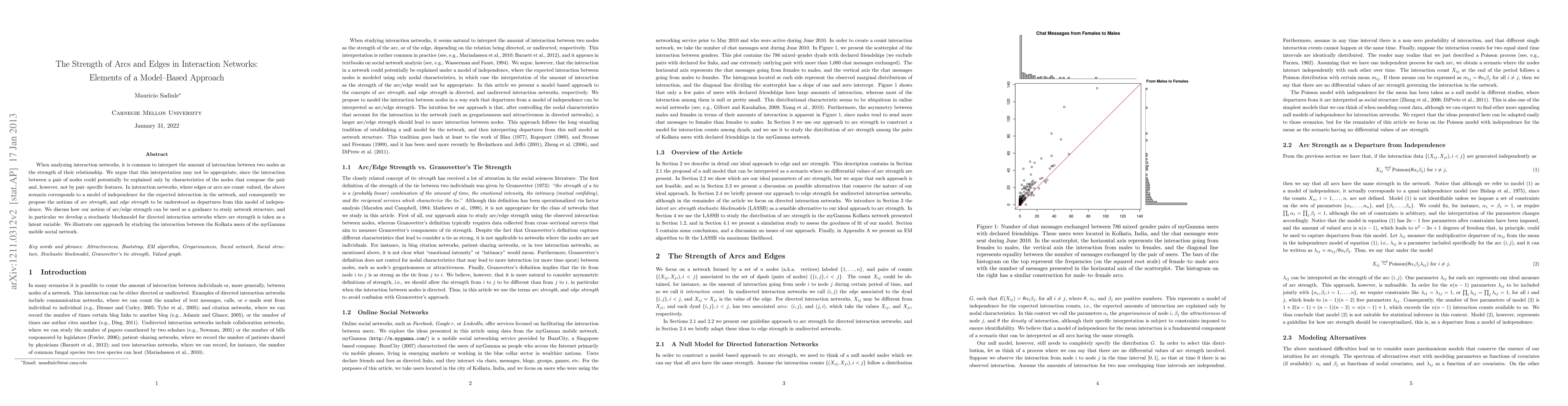 When analyzing interaction networks, it is common to interpret the amount of interaction between two nodes as the strength of their relationship. We argue that this interpretation may not be appropriate, since the interaction between a pair of nodes could potentially be explained only by characteristics of the nodes that compose the pair and, however, not by pair-specific features. In interaction networks, where edges or arcs are count-valued, the above scenario corresponds to a model of independence for the expected interaction in the network, and consequently we propose the notions of arc strength, and edge strength to be understood as departures from this model of independence. We discuss how our notion of arc/edge strength can be used as a guidance to study network structure, and in particular we develop a latent arc strength stochastic blockmodel for directed interaction networks. We illustrate our approach studying the interaction between the Kolkata users of the myGamma mobile network.