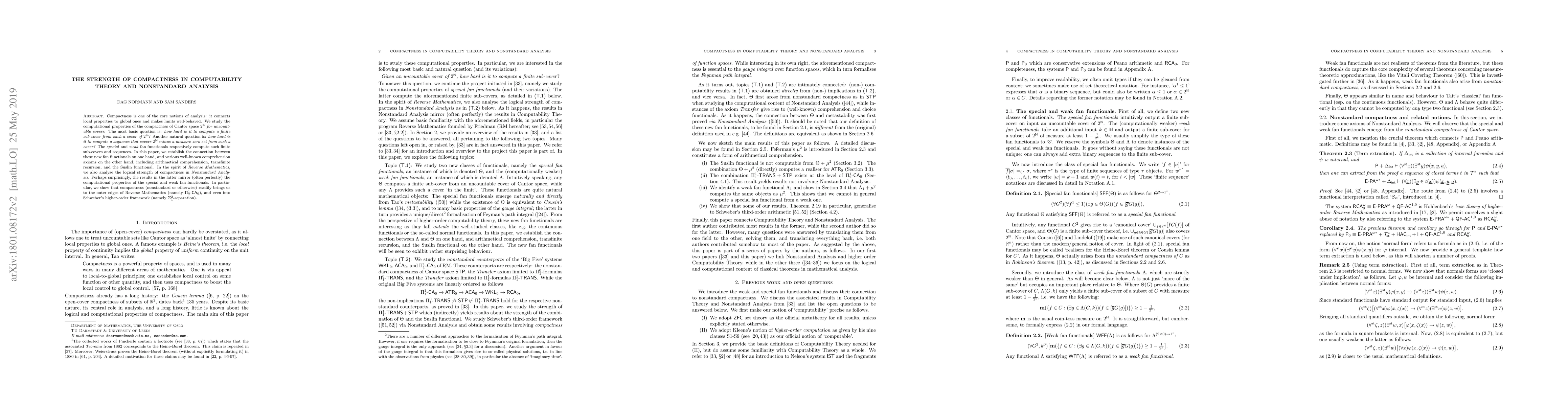 Compactness is one of the core notions of analysis: it connects local properties to global ones and makes limits well-behaved. We study the computational properties of the compactness of Cantor space $2^{\mathbb{N}}$ for uncountable covers. The most basic question is: how hard is it to compute a finite sub-cover from such a cover of $2^{\mathbb{N}}$? Another natural question is: how hard is it to compute a sequence that covers $2^{\mathbb{N}}$ minus a measure zero set from such a cover? The special and weak fan functionals respectively compute such finite sub-covers and sequences. In this paper, we establish the connection between these new fan functionals on one hand, and various well-known comprehension axioms on the other hand, including arithmetical comprehension, transfinite recursion, and the Suslin functional. In the spirit of Reverse Mathematics, we also analyse the logical strength of compactness in Nonstandard Analysis. Perhaps surprisingly, the results in the latter mirror (often perfectly) the computational properties of the special and weak fan functionals. In particular, we show that compactness (nonstandard or otherwise) readily brings us to the outer edges of Reverse Mathematics (namely $\Pi_2^1$-CA$_0$), and even into Schweber's higher-order framework (namely $\Sigma_{1}^{2}$-separation).