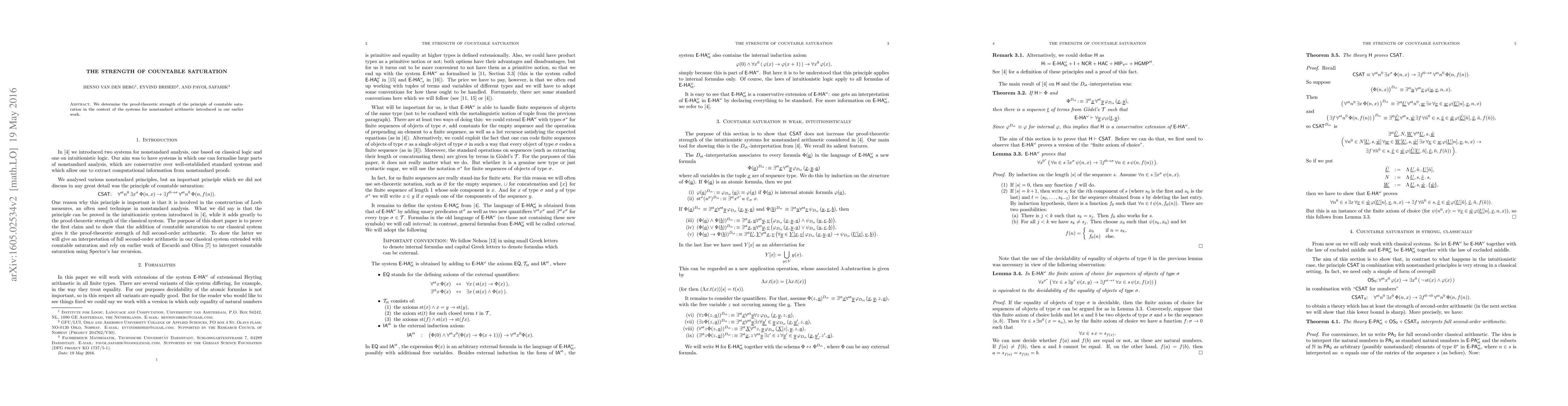The paper analyzes the logical strength of the principle of countable saturation within systems of nonstandard arithmetic. It identifies how this principle fits into the broader framework of mathematical logic and proof theory.