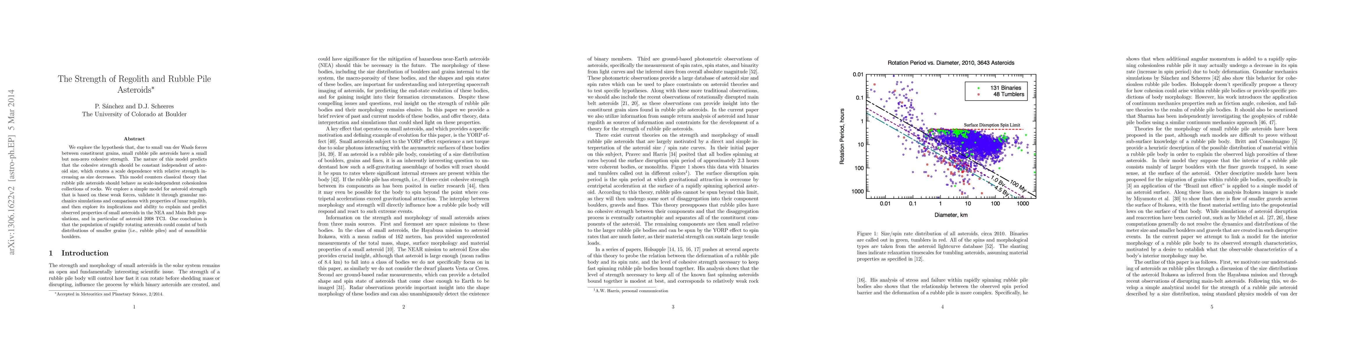 This paper proposes that small rubble pile asteroids exhibit a non-zero cohesive strength due to van der Waals forces, challenging the classical view of them as cohesionless. The study validates this hypothesis through granular mechanics simulations and compares it with lunar regolith properties, suggesting that the strength of these asteroids scales inversely with size.