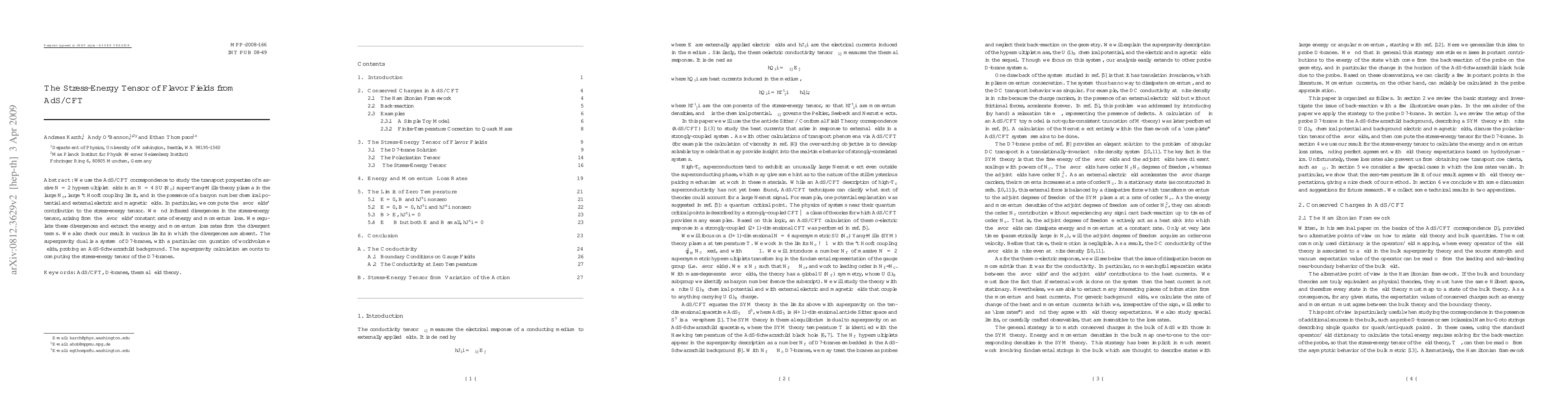 We use the AdS/CFT correspondence to study the transport properties of massive N=2 hypermultiplet fields in an N=4 SU(Nc) super-Yang-Mills theory plasma in the large Nc, large 't Hooft coupling limit, and in the presence of a baryon number chemical potential and external electric and magnetic fields. In particular, we compute the flavor fields' contribution to the stress-energy tensor. We find infrared divergences in the stress-energy tensor, arising from the flavor fields' constant rate of energy and momentum loss. We regulate these divergences and extract the energy and momentum loss rates from the divergent terms. We also check our result in various limits in which the divergences are absent. The supergravity dual is a system of D7-branes, with a particular configuration of worldvolume fields, probing an AdS-Schwarzschild background. The supergravity calculation amounts to computing the stress-energy tensor of the D7-branes.