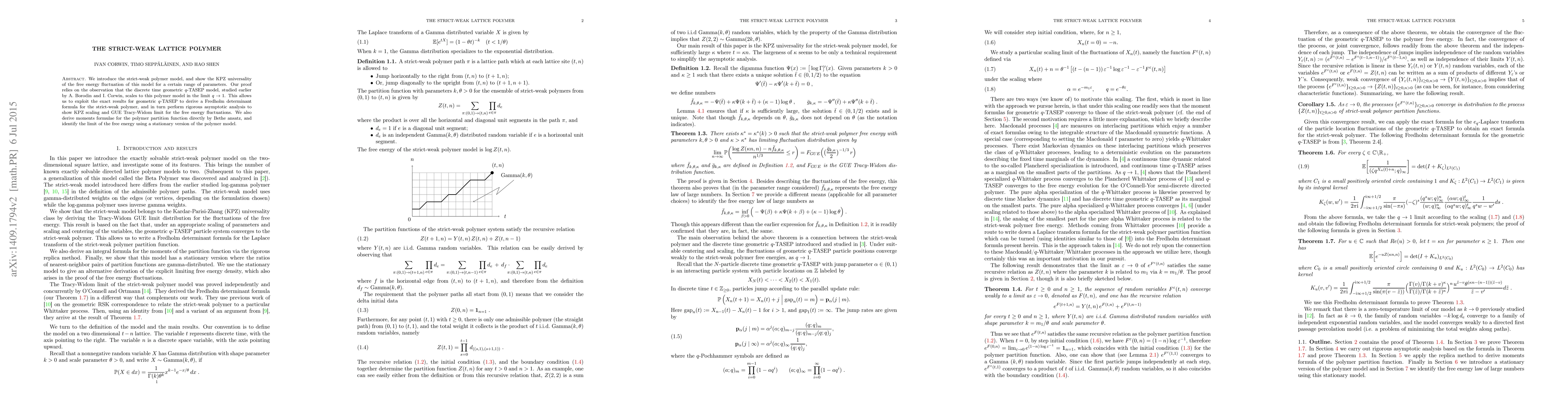 We introduce the strict-weak polymer model, and show the KPZ universality of the free energy fluctuation of this model for a certain range of parameters. Our proof relies on the observation that the discrete time geometric q-TASEP model, studied earlier by A. Borodin and I. Corwin, scales to this polymer model in the limit q->1. This allows us to exploit the exact results for geometric q-TASEP to derive a Fredholm determinant formula for the strict-weak polymer, and in turn perform rigorous asymptotic analysis to show KPZ scaling and GUE Tracy-Widom limit for the free energy fluctuations. We also derive moments formulae for the polymer partition function directly by Bethe ansatz, and identify the limit of the free energy using a stationary version of the polymer model.