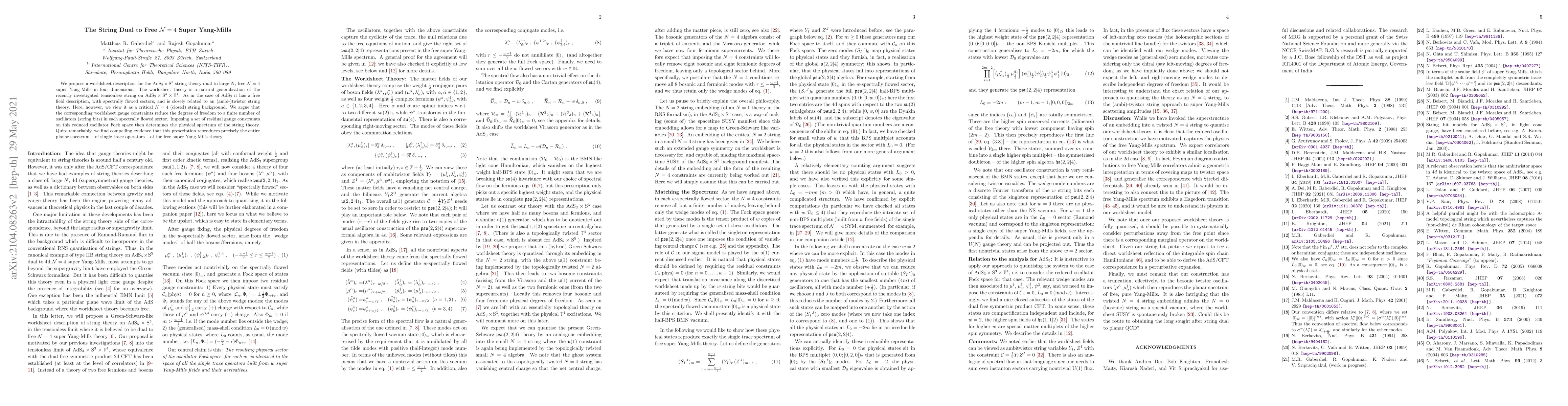 This paper proposes a worldsheet description for the ${\rm AdS}_5\times {\rm S}^5$ string theory dual to large $N$, free ${\cal N}=4$ super Yang-Mills. It argues that this critical $N=4$ string background reproduces the entire planar spectrum of the free super Yang-Mills theory.