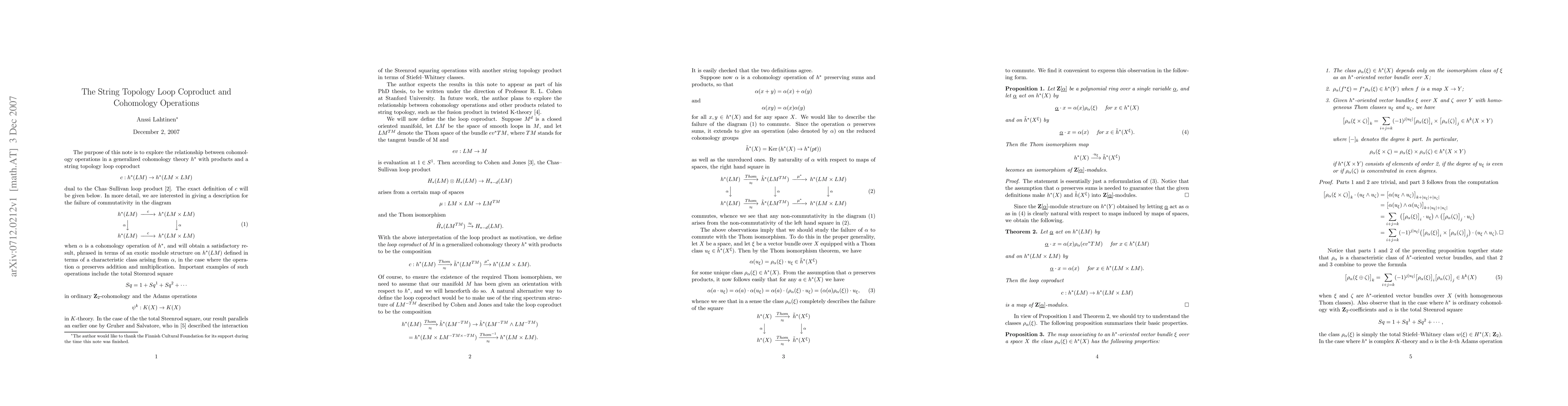 This note explores the interaction between cohomology operations in a generalized cohomology theory and a string topology loop coproduct dual to the Chas--Sullivan loop product. More precisely, we ask for a description for the failure of a given operation to commute with the loop coproduct, and will obtain a satisfactory answer in the case where the operation preserves both sums and products. Examples of such operations include the total Steenrod square in ordinary mod 2 cohomology and the Adams operations in K-theory.