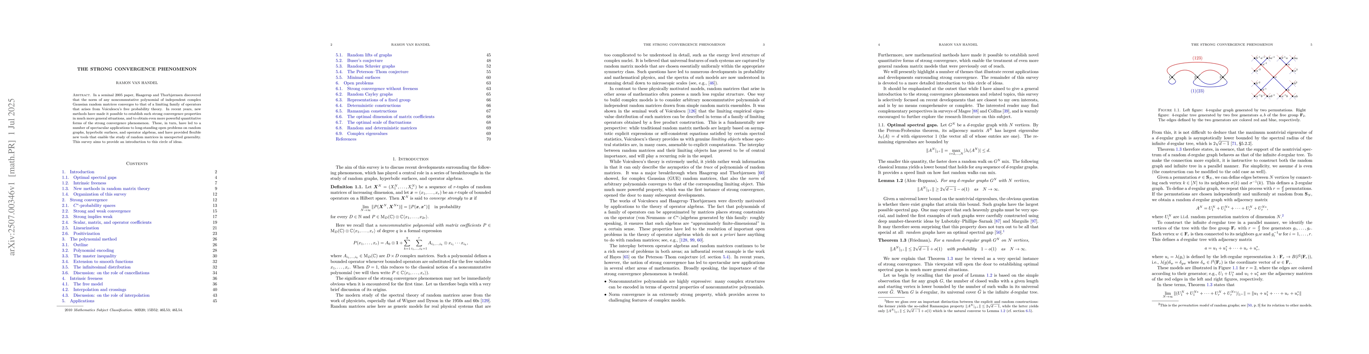In a seminal 2005 paper, Haagerup and Thorbj{\o}rnsen discovered that the norm of any noncommutative polynomial of independent complex Gaussian random matrices converges to that of a limiting family of operators that arises from Voiculescu's free probability theory. In recent years, new methods have made it possible to establish such strong convergence properties in much more general situations, and to obtain even more powerful quantitative forms of the strong convergence phenomenon. These, in turn, have led to a number of spectacular applications to long-standing open problems on random graphs, hyperbolic surfaces, and operator algebras, and have provided flexible new tools that enable the study of random matrices in unexpected generality. This survey aims to provide an introduction to this circle of ideas.