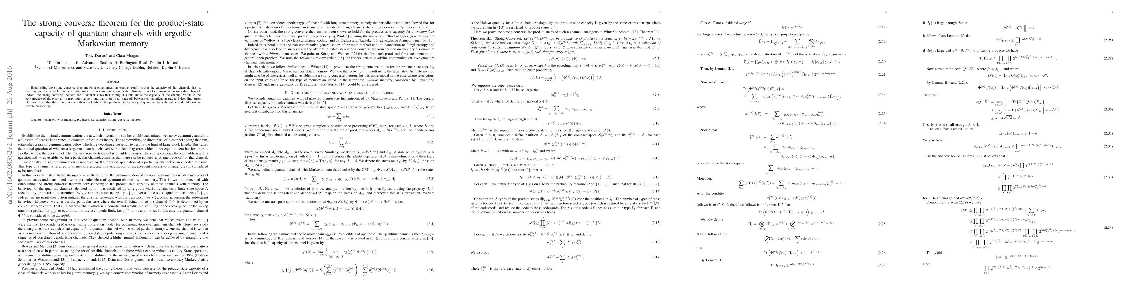 This paper establishes the strong converse theorem for quantum channels with ergodic Markovian memory, confirming that exceeding the product-state capacity results in a convergence of error to its maximum value, with no trade-off between communication rate and error.
