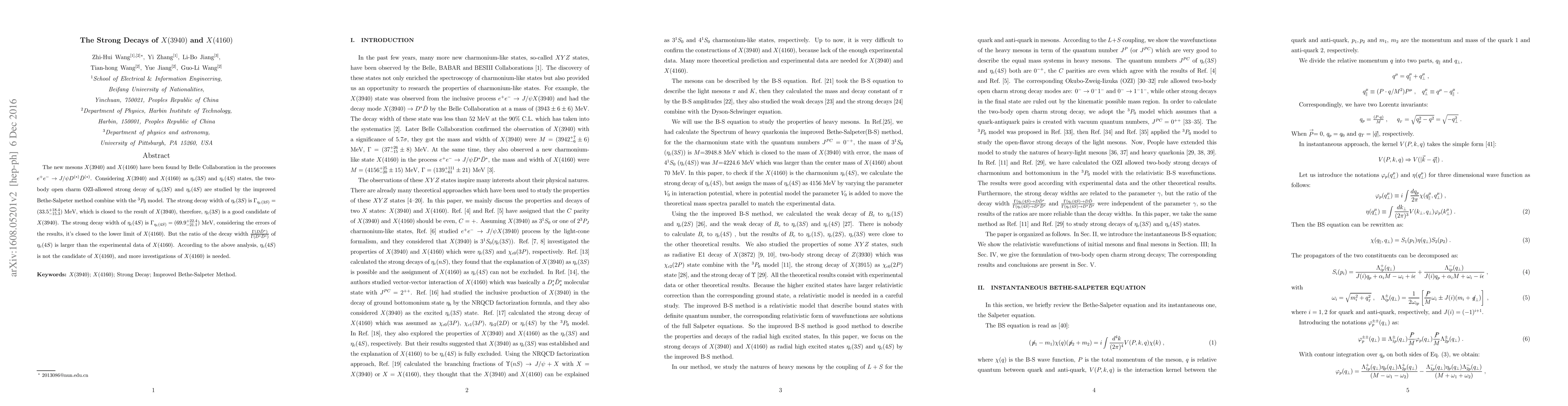 The study uses improved Bethe-Salpeter method with 3P0 model to analyze the strong decays of X(3940) and X(4160), identifying X(3940) as a likely ηc(3S) state with a decay width of 33.5±18.4 MeV. X(4160), however, is not supported as ηc(4S) due to discrepancies in decay width ratio, necessitating further investigation.