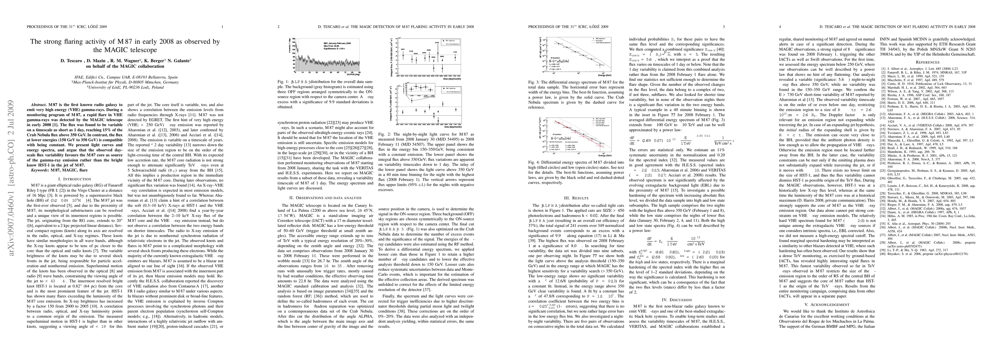 M87 is the first known radio galaxy to emit very high energy (VHE) gamma-rays. During a monitoring program of M87, a rapid flare in VHE gamma-rays was detected by the MAGIC telescope in early 2008. The flux was found to be variable on a timescale as short as 1 day, reaching 15% of the Crab Nebula flux above 350 GeV. In contrast, the flux at lower energies (150 GeV to 350 GeV) is compatible with being constant. We present light curves and energy spectra, and argue that the observed day-scale flux variability favours the M87 core as source of the gamma-ray emission rather than the bright know HST-1 in the jet of M87.