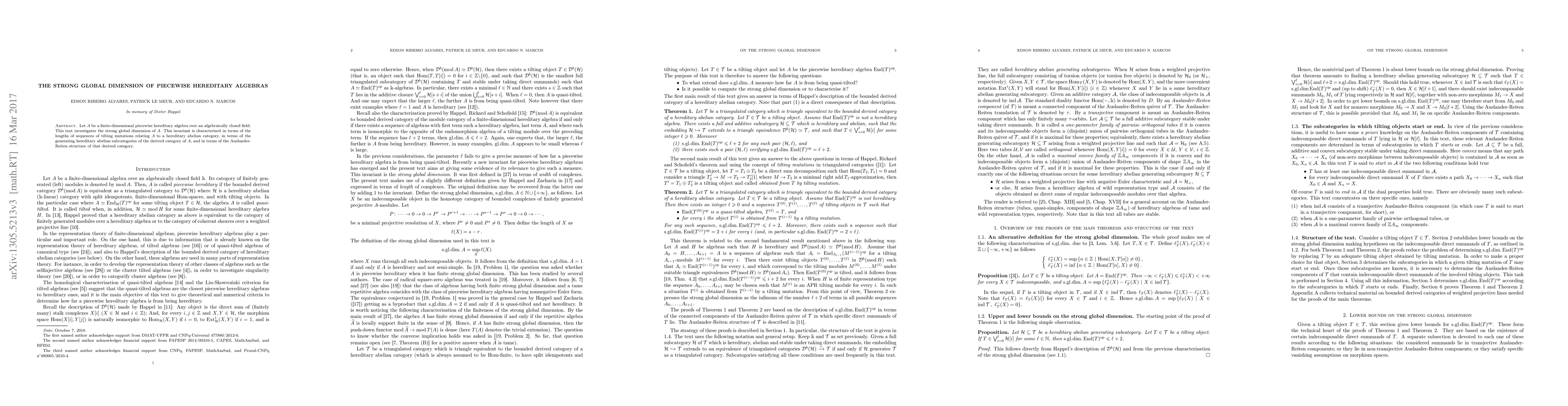 The paper investigates the strong global dimension of piecewise hereditary algebras, a concept in category theory, and finds that it can be expressed using sequences of tilting objects and hereditary generating subcategories.