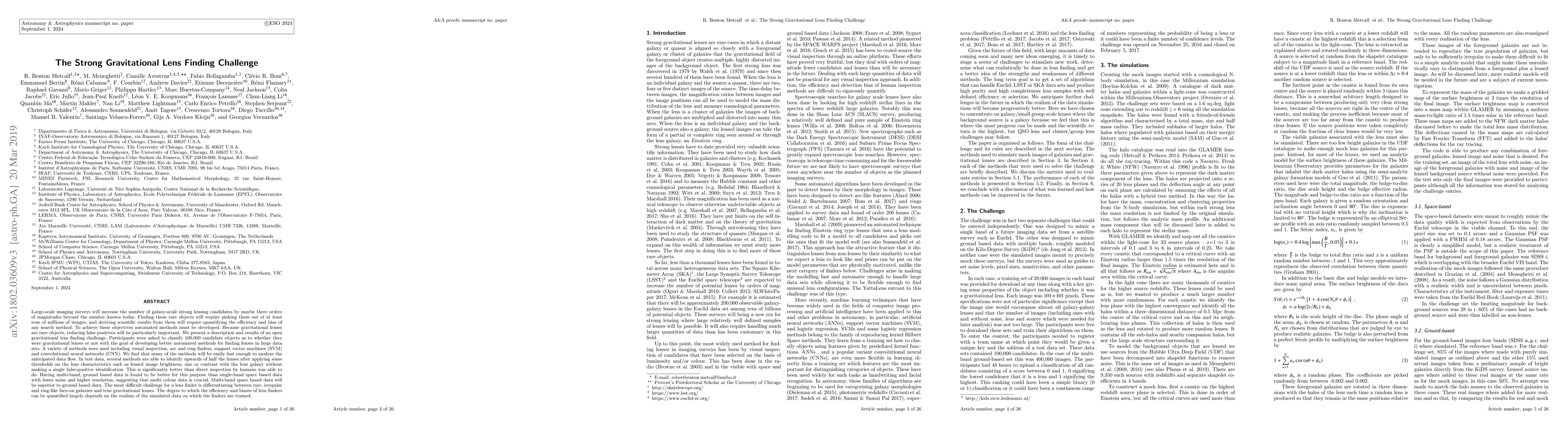 This research presents an open challenge to develop automated methods for identifying strong gravitational lenses from large imaging surveys. Various techniques, including machine learning, were tested on 100,000 candidate objects, showing that some methods can identify over half of the lenses without false positives, outperforming human inspection.