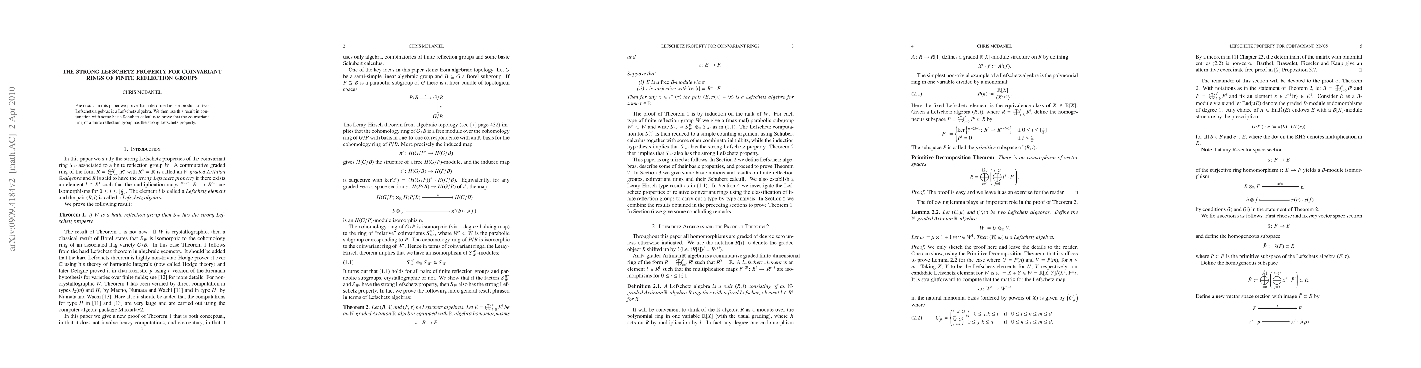 In this paper we prove that a deformed tensor product of two Lefschetz algebras is a Lefschetz algebra. We then use this result in conjunction with some basic Schubert calculus to prove that the coinvariant ring of a finite reflection has the strong Lefschetz property.