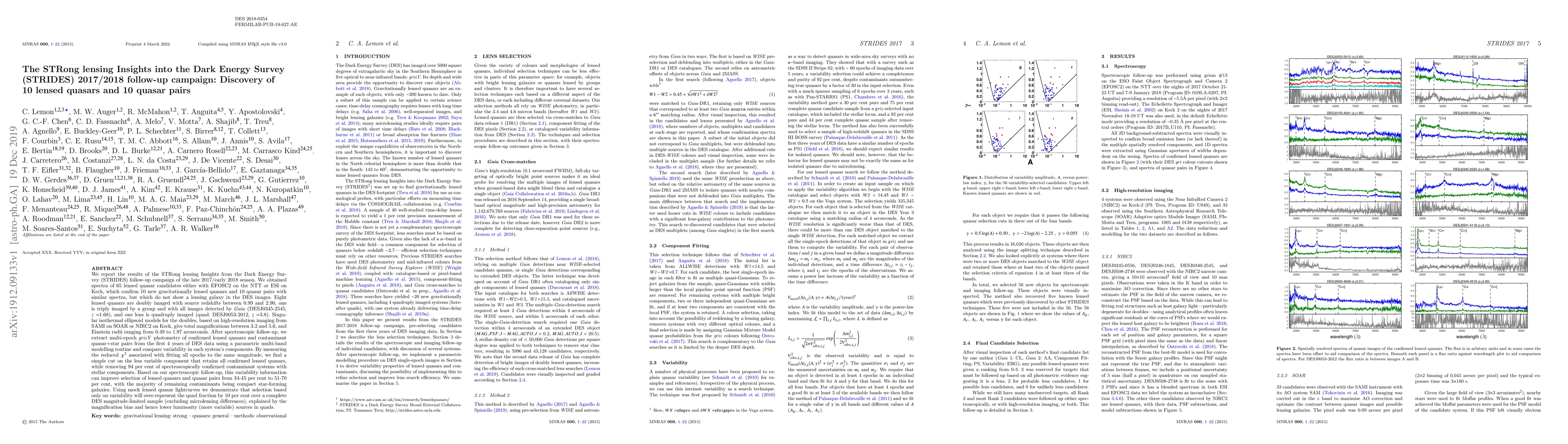 The STRIDES follow-up campaign confirmed 10 new gravitationally lensed quasars and 10 quasar pairs, revealing a range of lensing configurations from doubly to quadruply imaged systems. Variability analysis improved the selection of lensed quasars, enhancing detection rates from 34-45% to 51-70%, while reducing the contamination from star-forming galaxies.