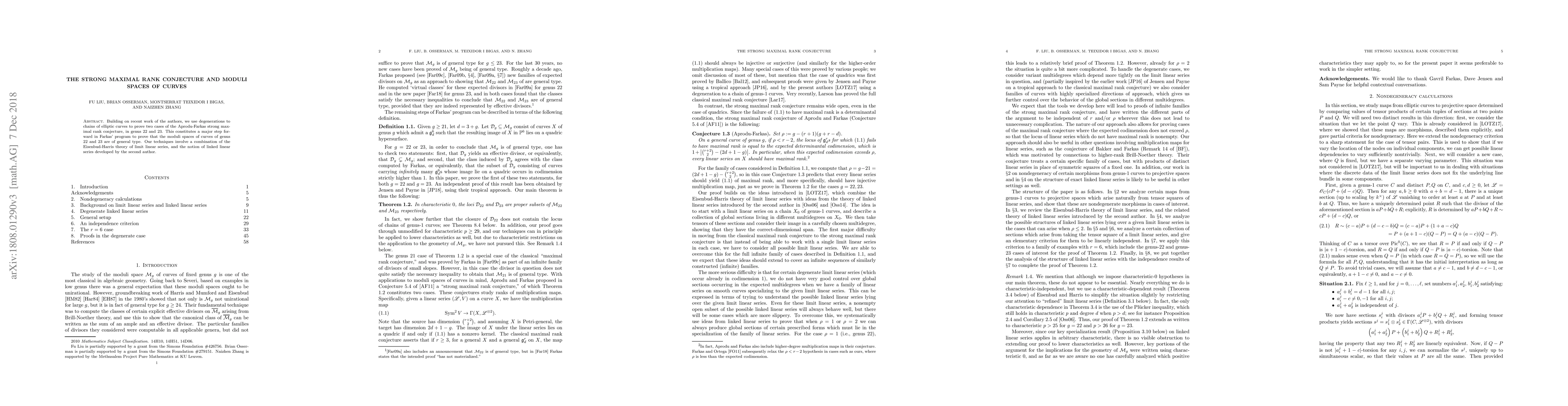 Researchers prove two cases of the Aprodu-Farkas strong maximal rank conjecture for curves of genus 22 and 23, a key step towards showing that their moduli spaces are of general type.